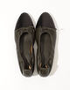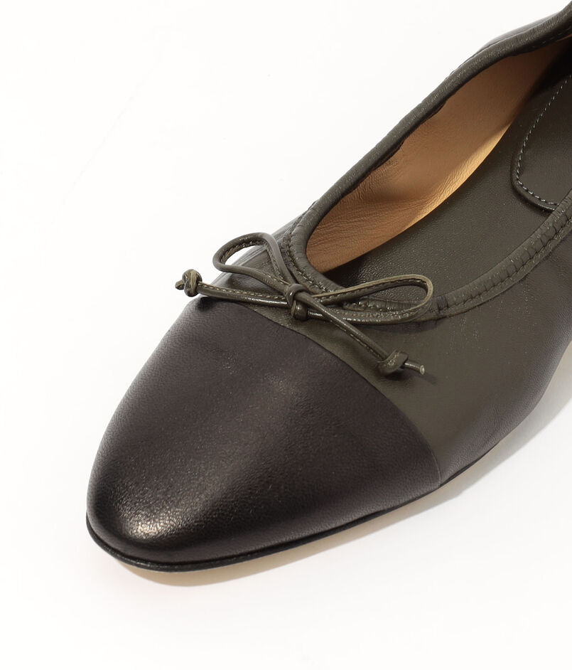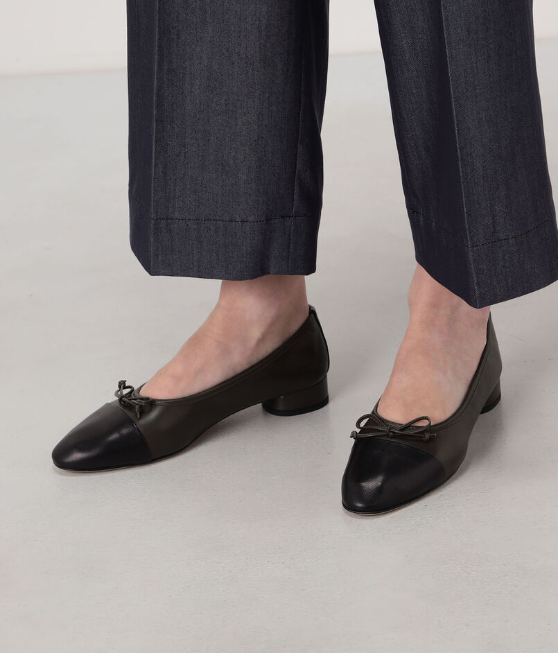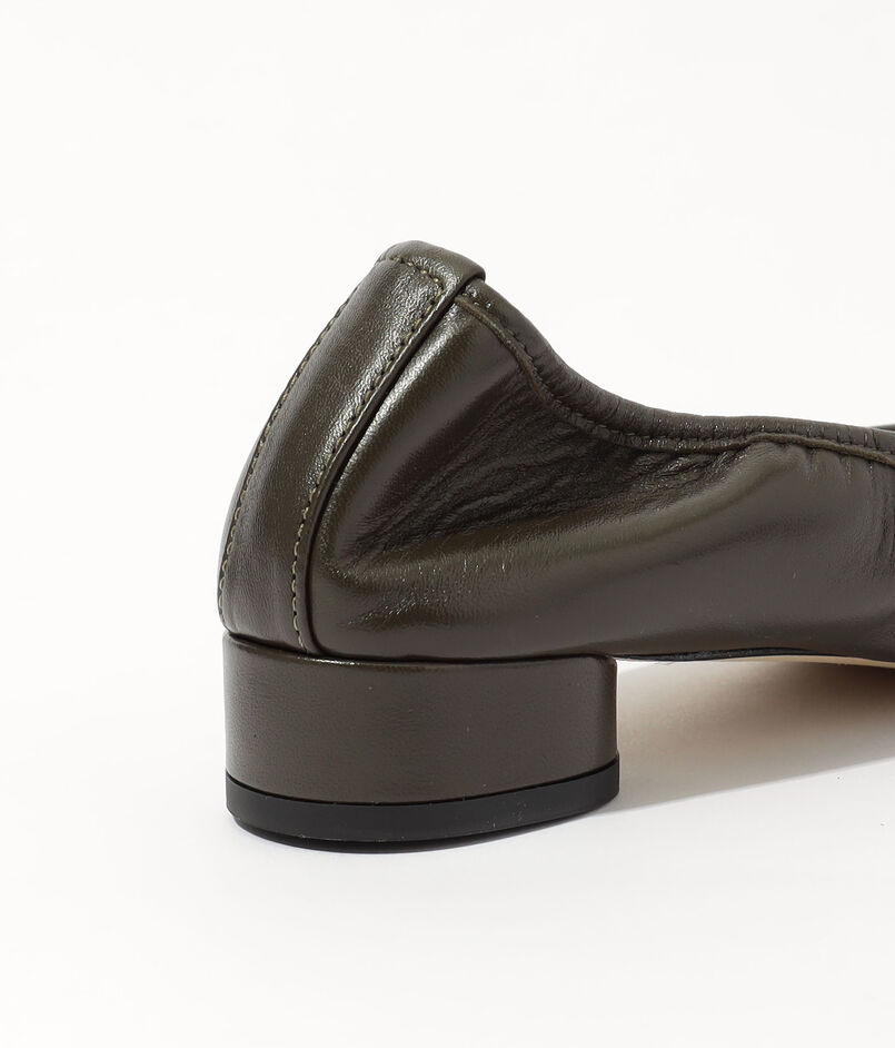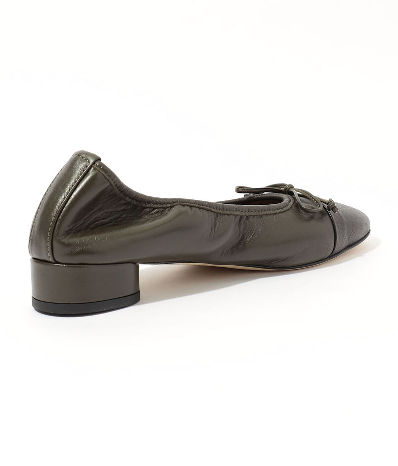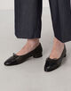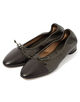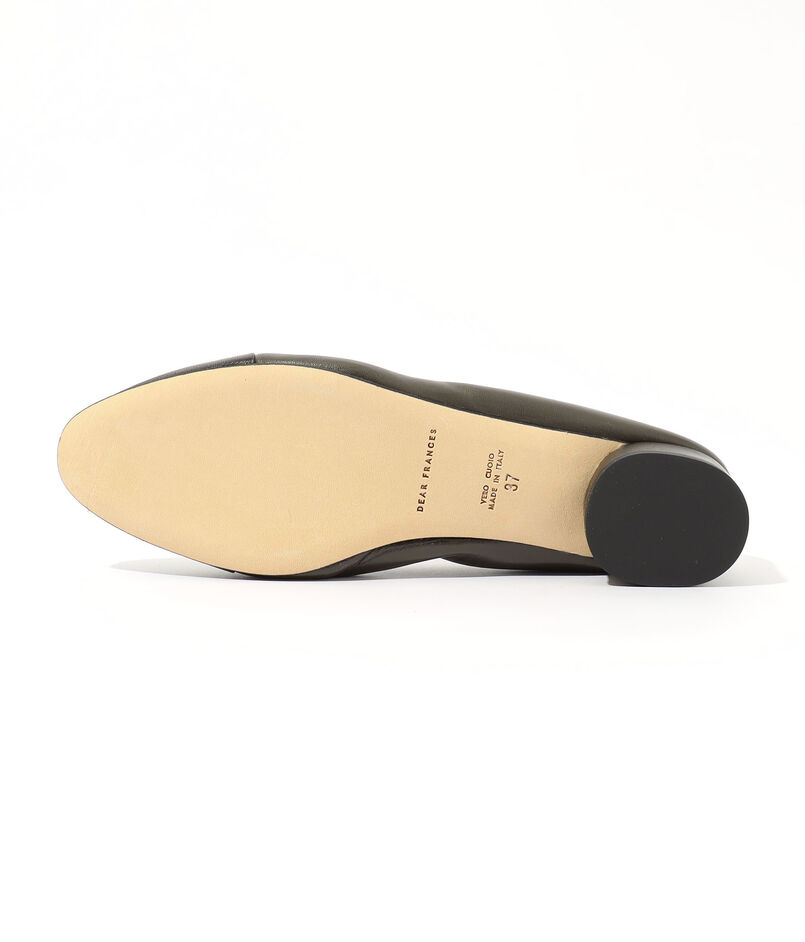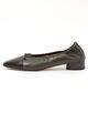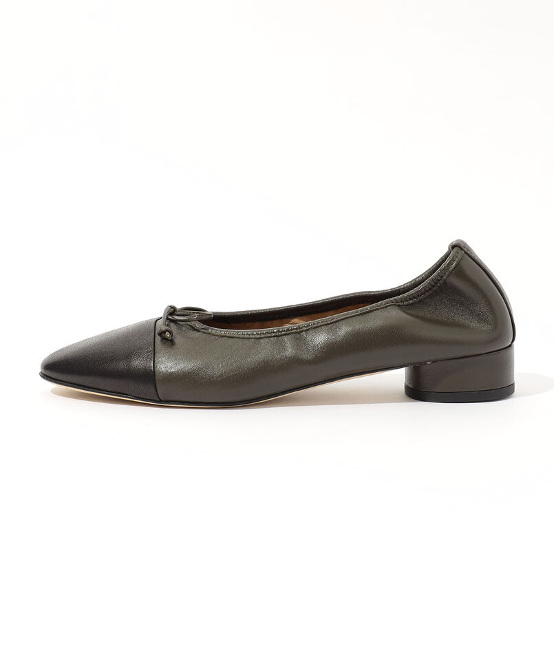 柔らかなアーモンドシルエットのローヒールパンプス。
