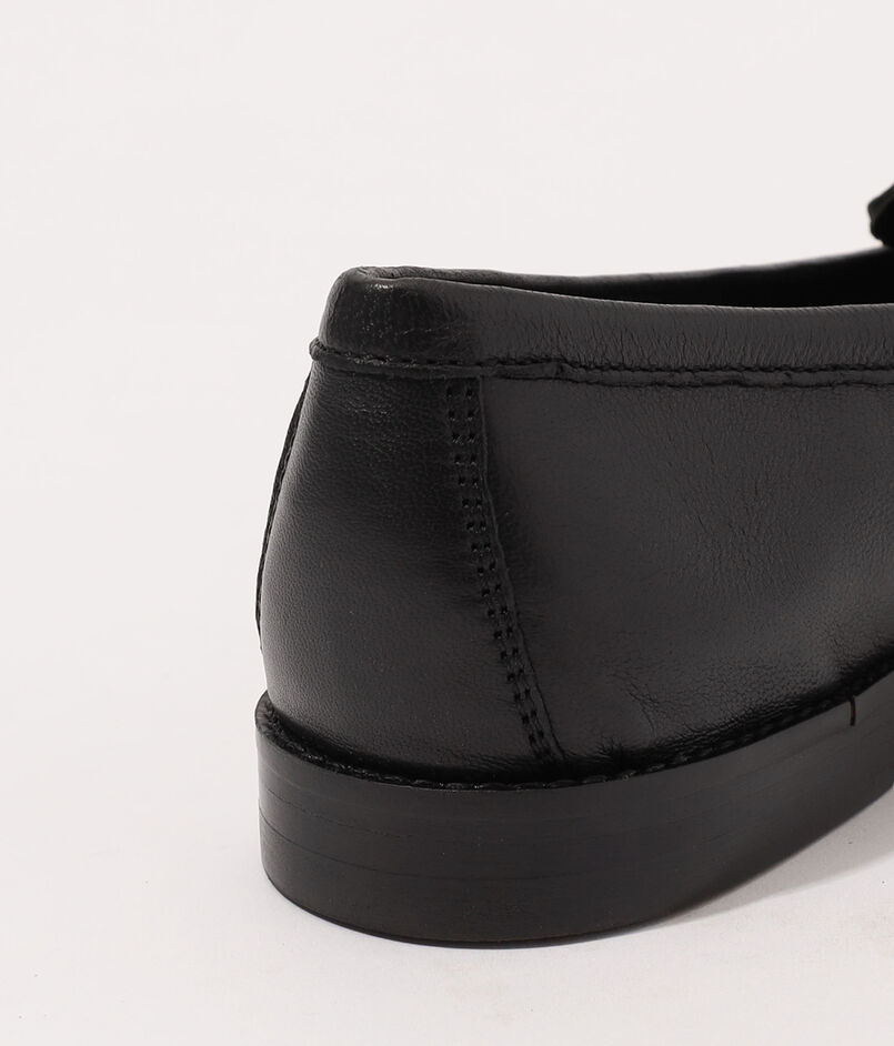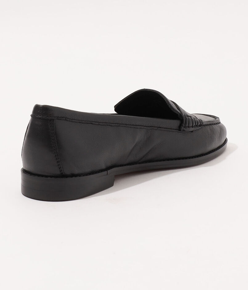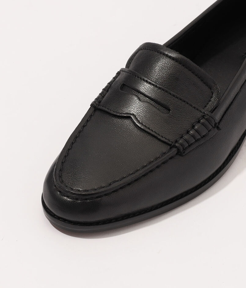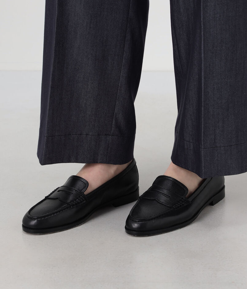 レザーソールとスタックヒールを施した、クラシックなスリッポンローファー。