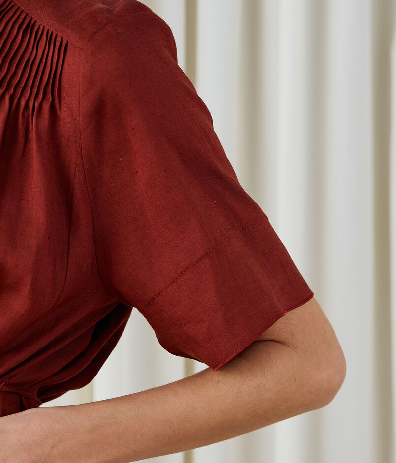 長さの異なるピンタックを同じ場所で終わらせるのは非常に難しく、熟練の職人ならではの素晴らしい技術を感じていただけます。
