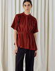 海外縫製ならではの手作業で仕上げられた細かなピンタックディテールとアシンメトリーなヘムラインがデザインポイントのブラウス。
