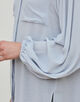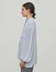 後ろ袖にボリュームが溜まるよう前の袖を少し短くし、後ろ下がりのバランスに仕立てています。