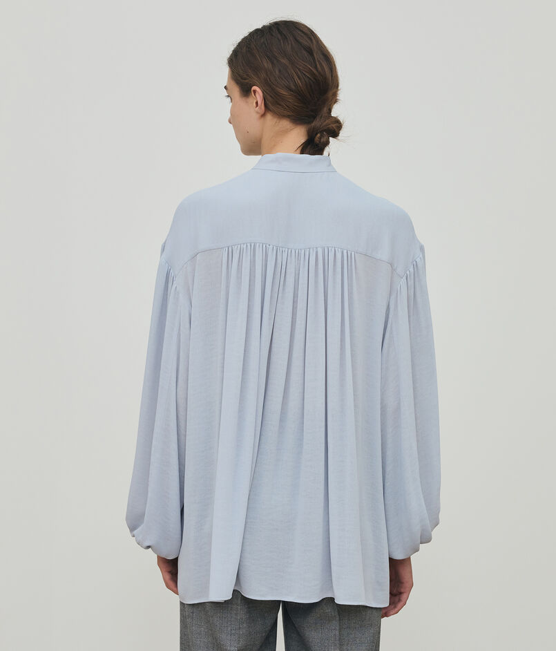 チュニックブラウスはバックヨークに寄せたギャザーディテールでふんわりとしたシルエットに仕上げた一枚。
