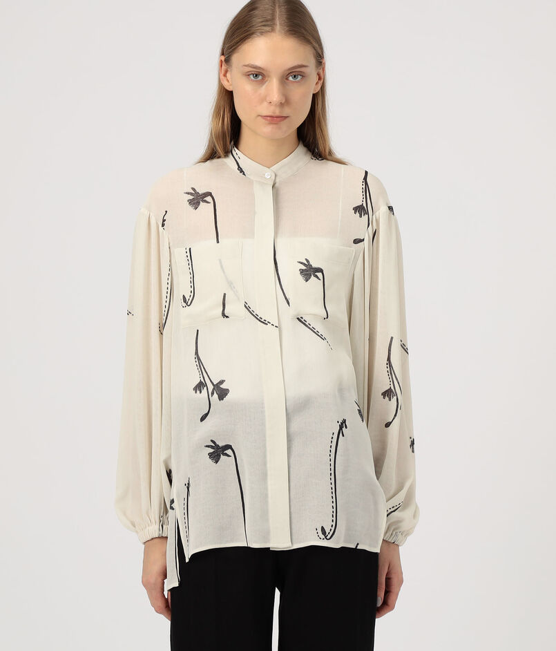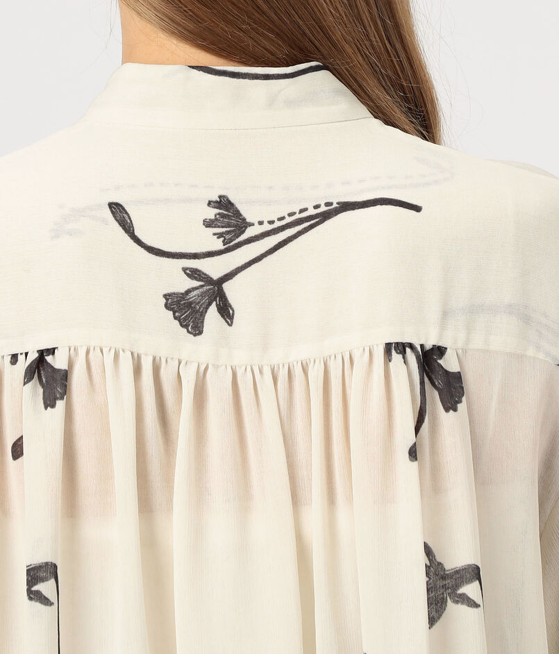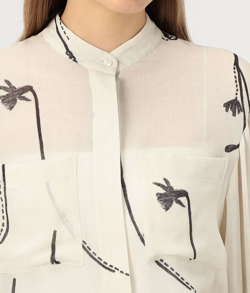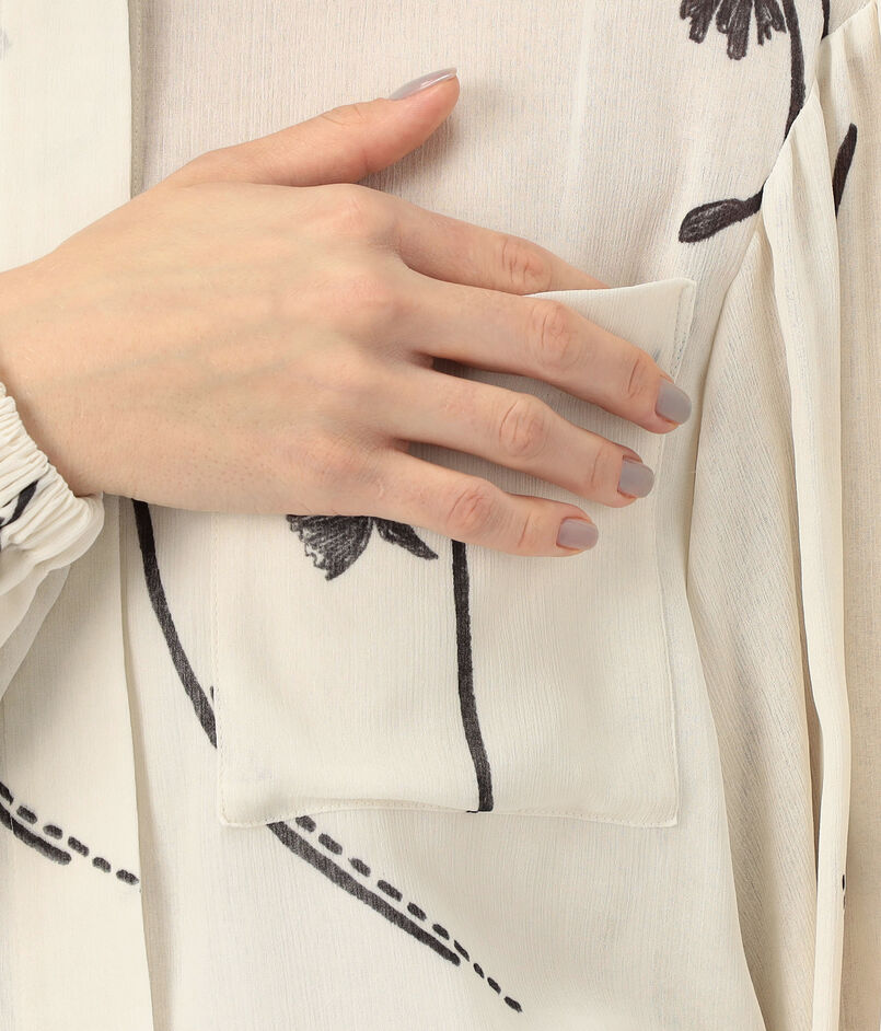 花柄を〈DES PRES〉らしくモードでシャープに、凛とした一輪の花をイメージして作成したオリジナルプリントが目を惹くブラウスシリーズ。