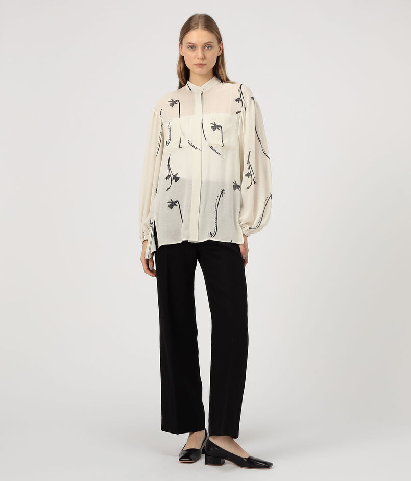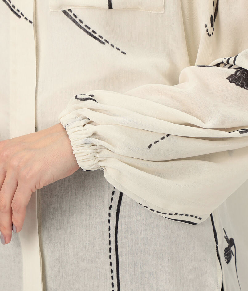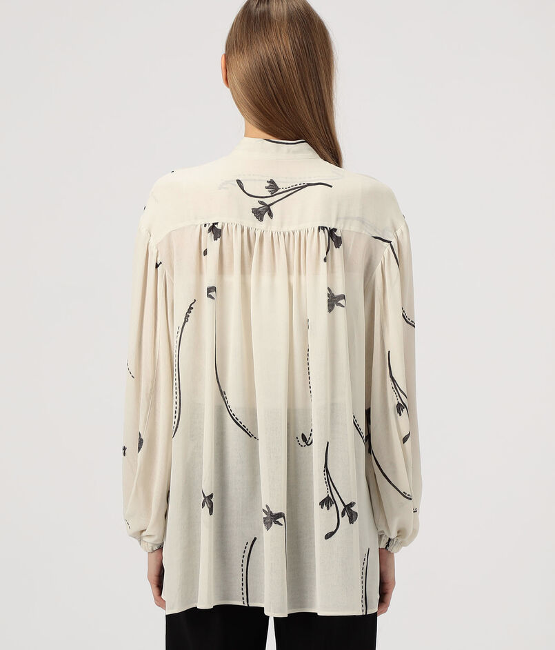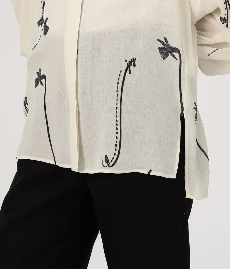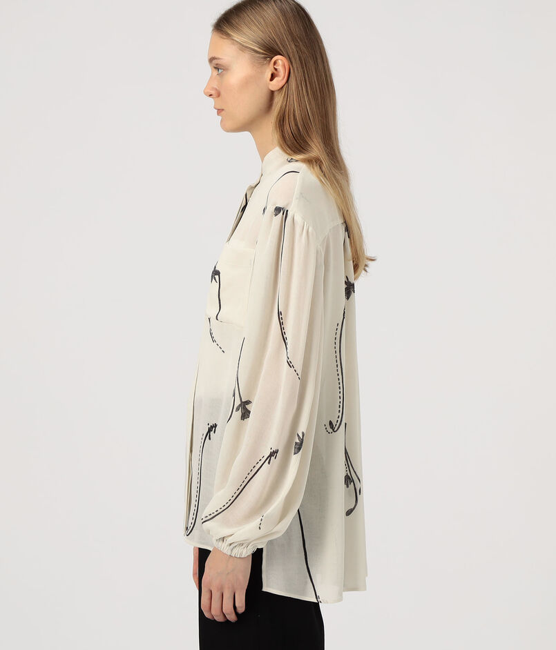花柄を〈DES PRES〉らしくモードでシャープに、凛とした一輪の花をイメージして作成したオリジナルプリントが目を惹くブラウスシリーズ。