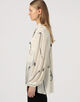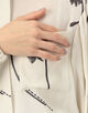後ろ袖にボリュームが溜まるよう前の袖を少し短くし、後ろ下がりのバランスに仕立てています。