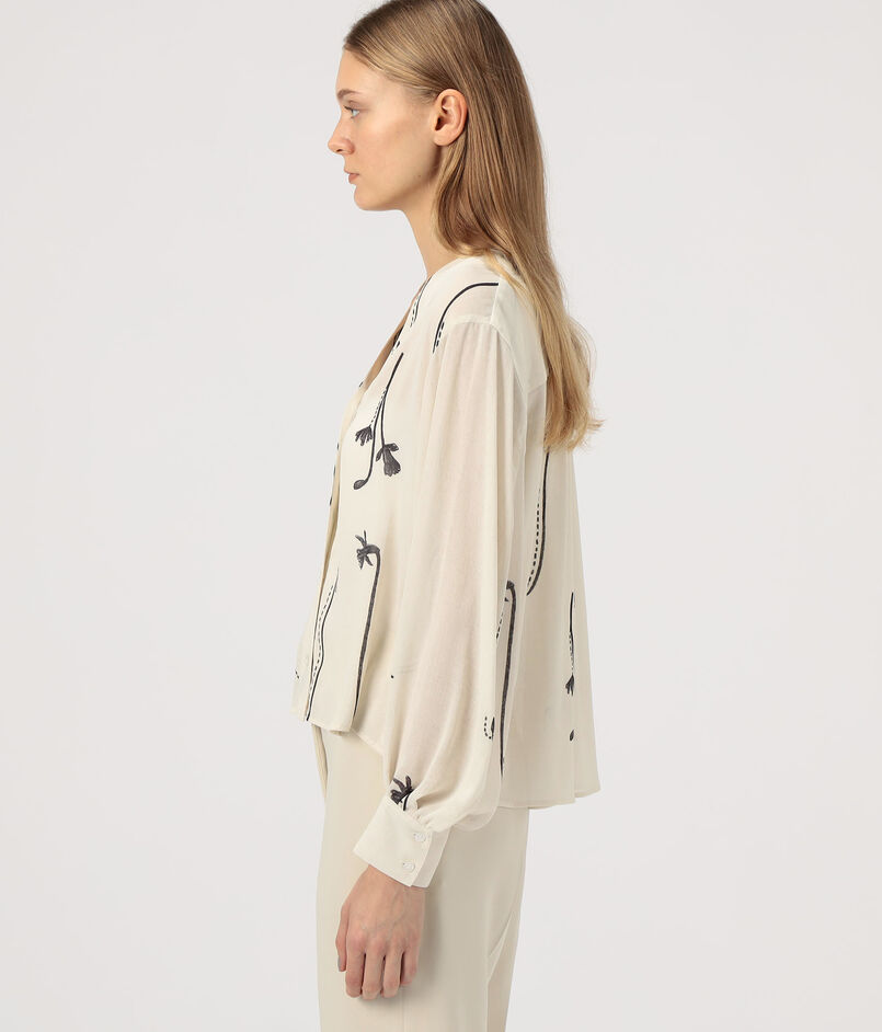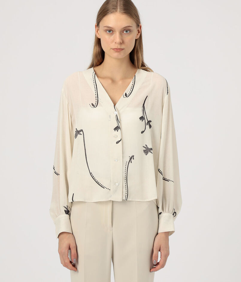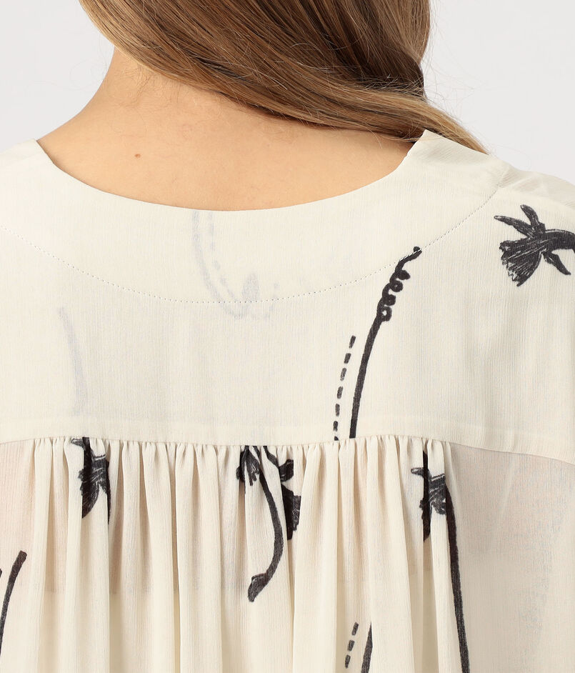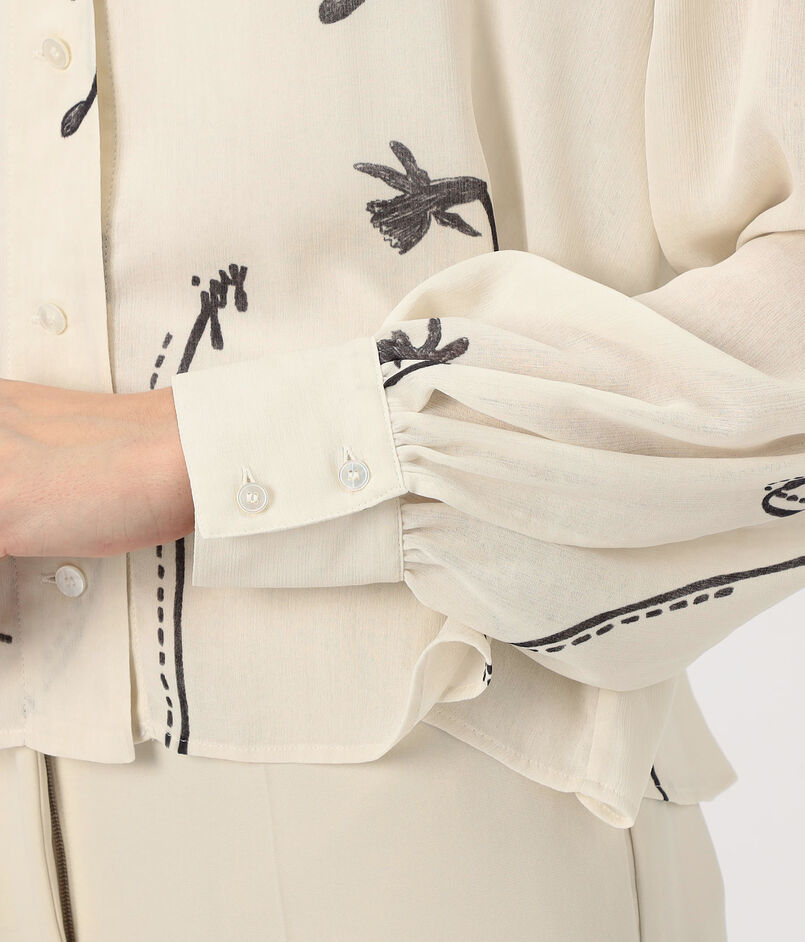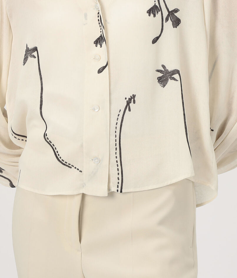 花柄を〈DES PRES〉らしくモードでシャープに、凛とした一輪の花をイメージして作成したオリジナルプリントが目を惹くブラウスシリーズ。