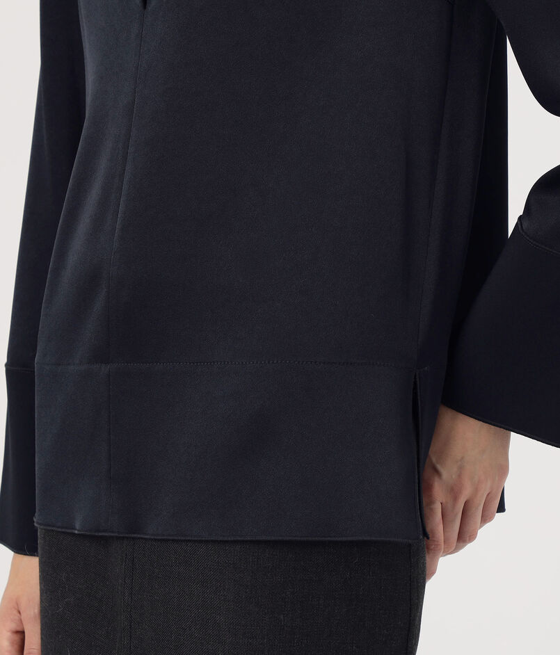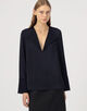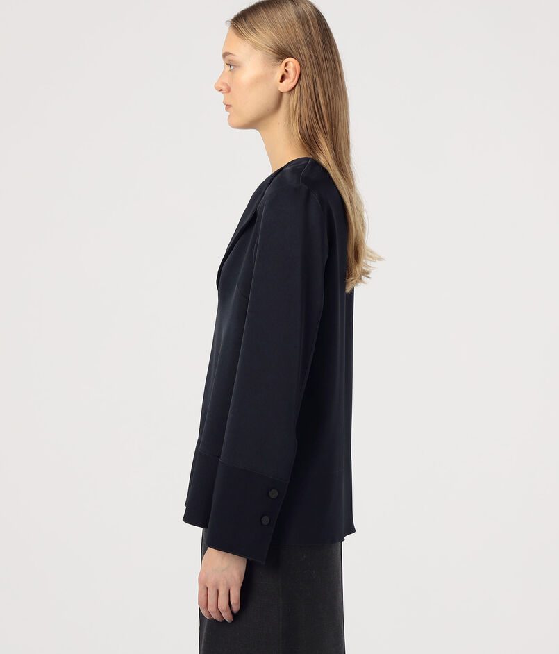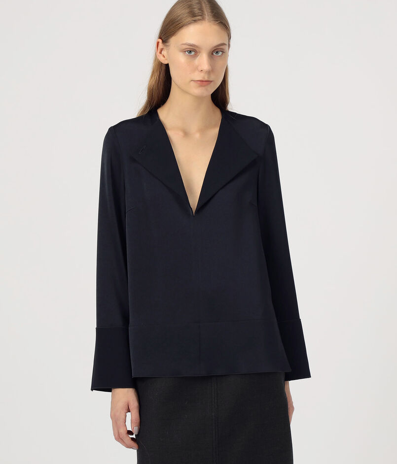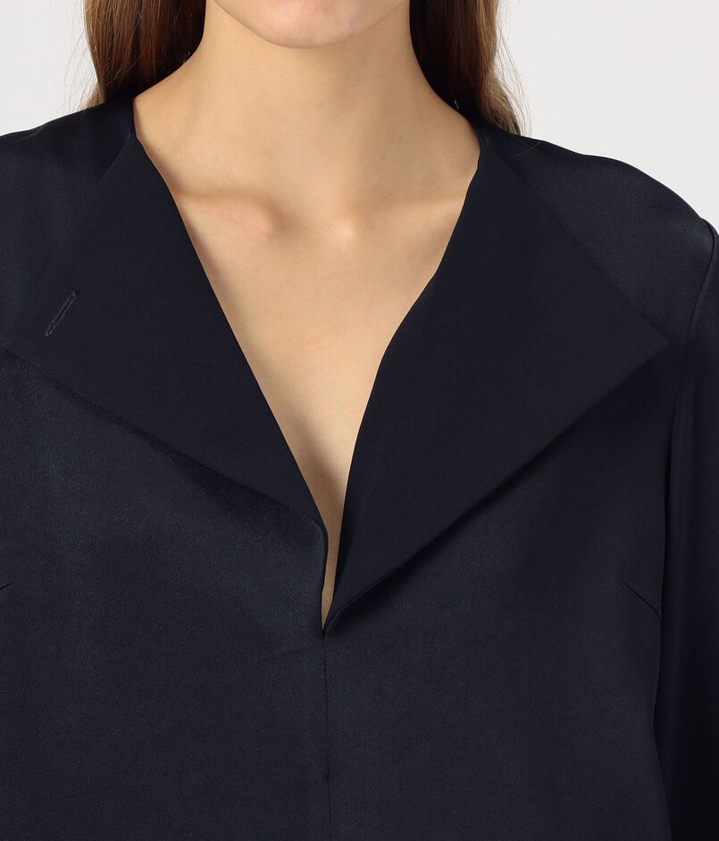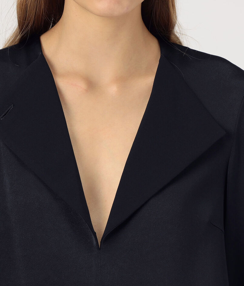 サテンジョーゼット オープンカラーブラウス