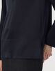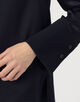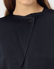 オープン時はデコルテのアクセサリーも映えて華やかな印象になり、クローズ時はボタンがアクセントになりモードさのある着こなしに。