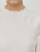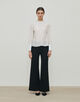 首元を優しく彩る細やかなフリルネックで顔周りに華やかなアクセントとクラシカルな品の良さをプラスした一着。