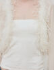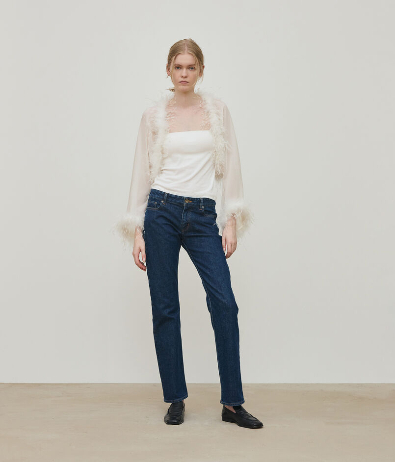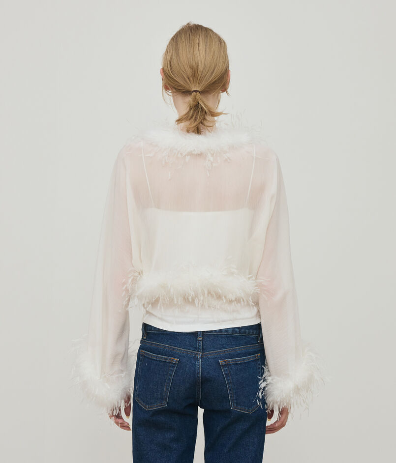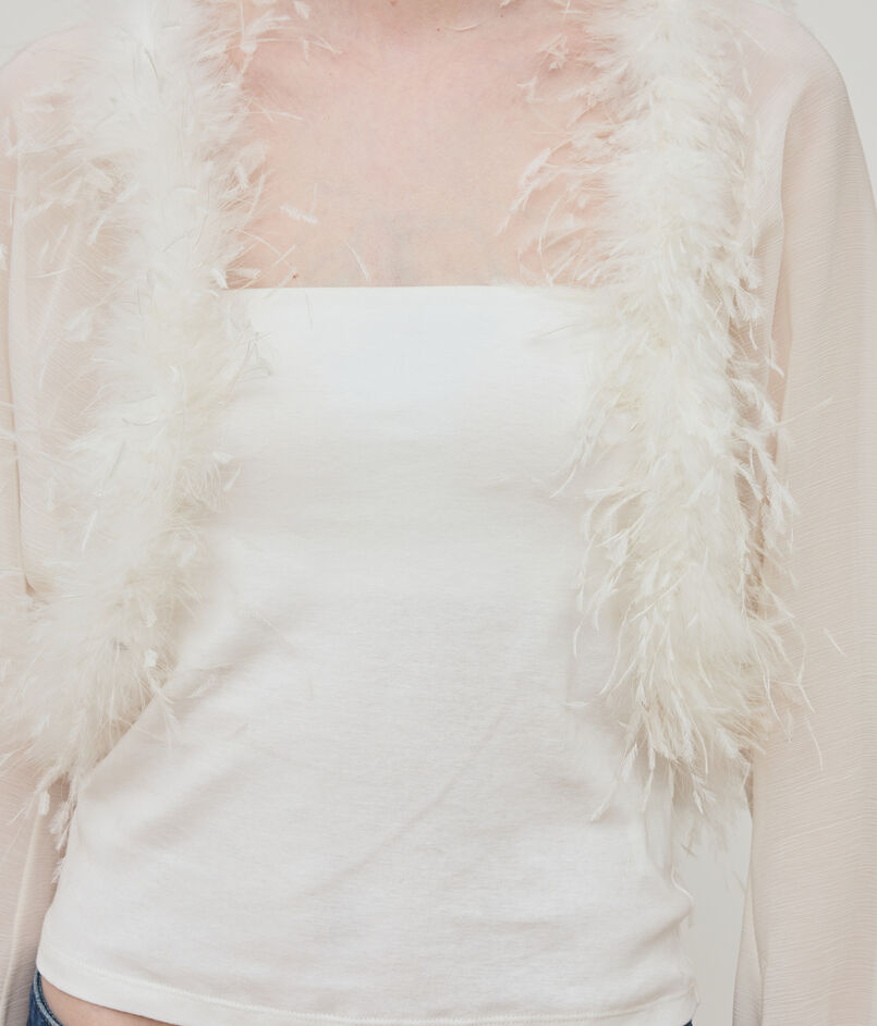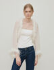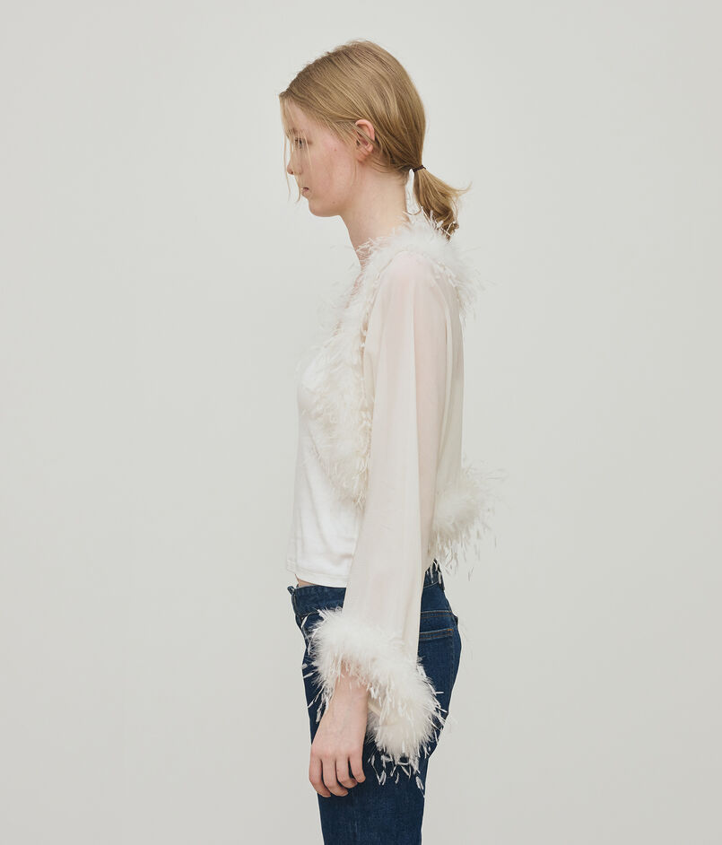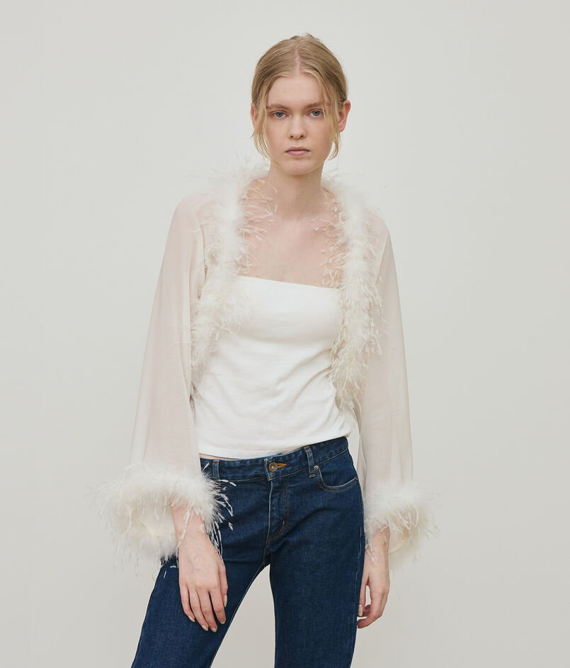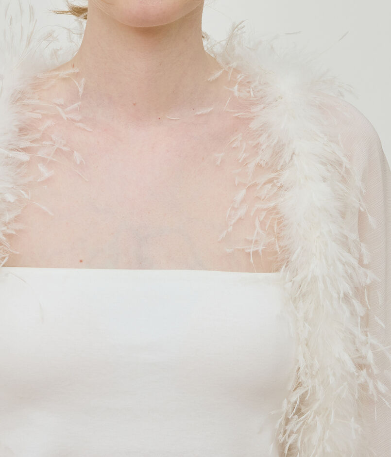 マラボーつきのボレロはフェザーディティールがポイントのエレガントなアイテム。