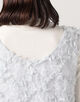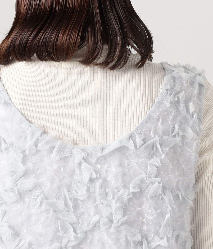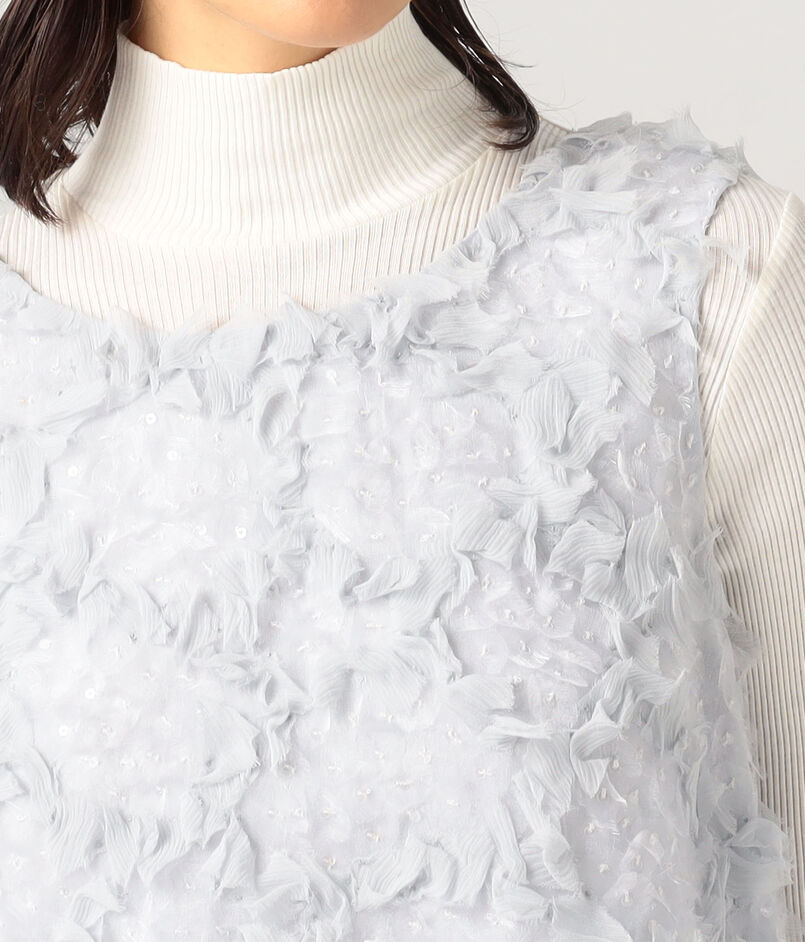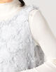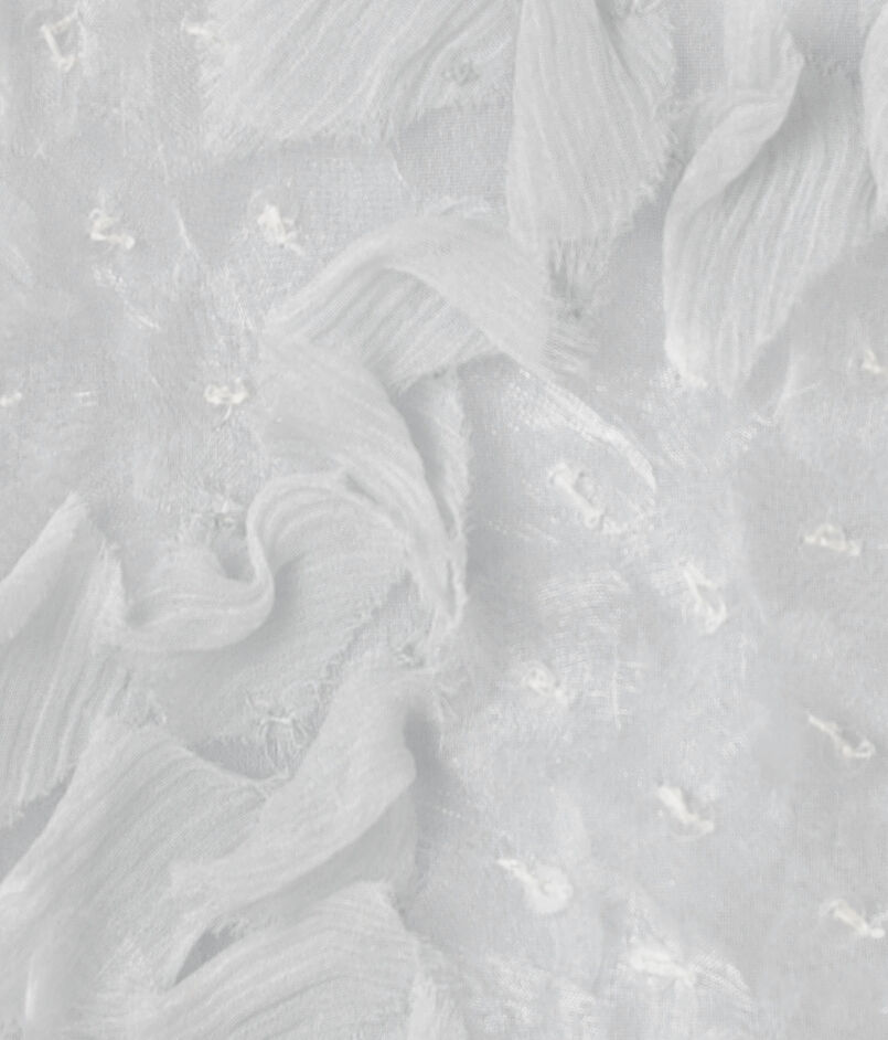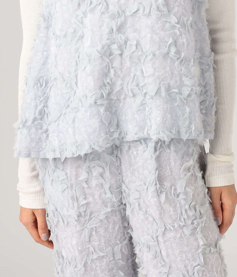 シルクシフォンのベースの上にシルク楊柳×オーガンジー×スパンコールで刺繍を施し立体感のある素材に仕上げています。