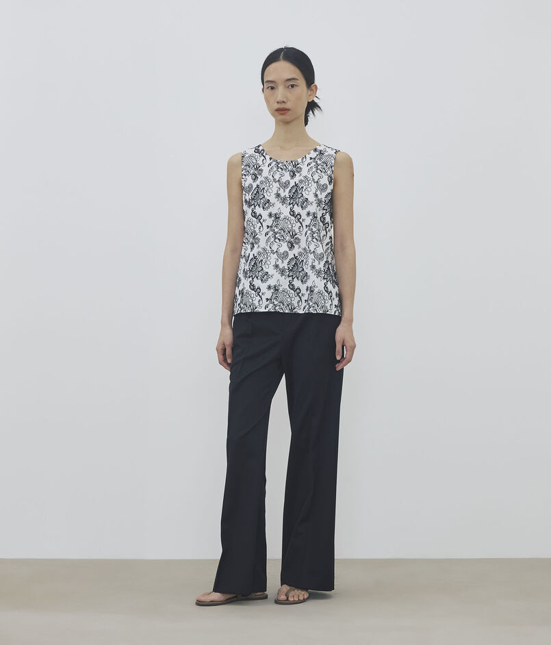 トップスはシンプルなシルエットでさらっと軽く着用できる一枚。