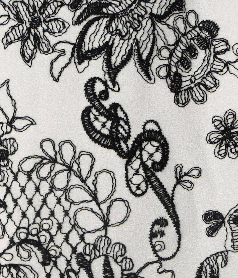 手書きで仕上げた図案ならではの人の手の感触が残った細部のニュアンスが美しく、刺繍機の加工プロセスの中にも細かく丁寧な作業工程が詰まっています。