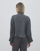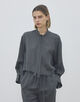 ブラウスはゆったりとした身幅に対して、短めに設定された着丈が新鮮な一着。