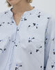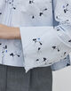 袖口見返しのストライプを折り返してアクセントにするのもおすすめ。