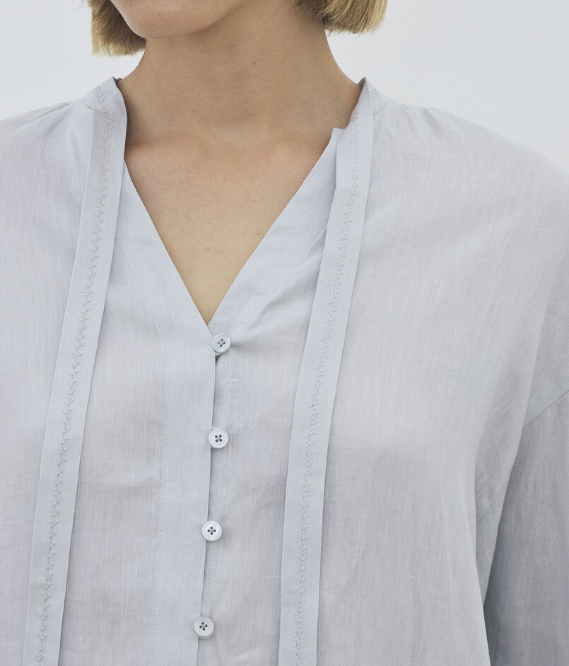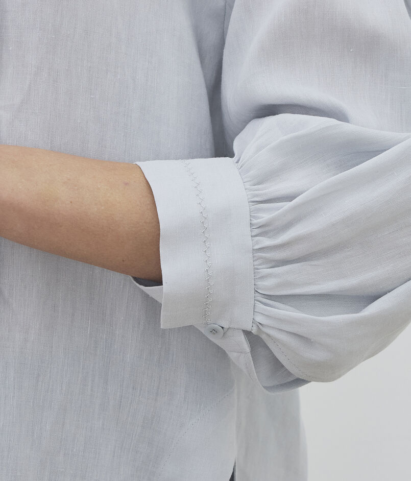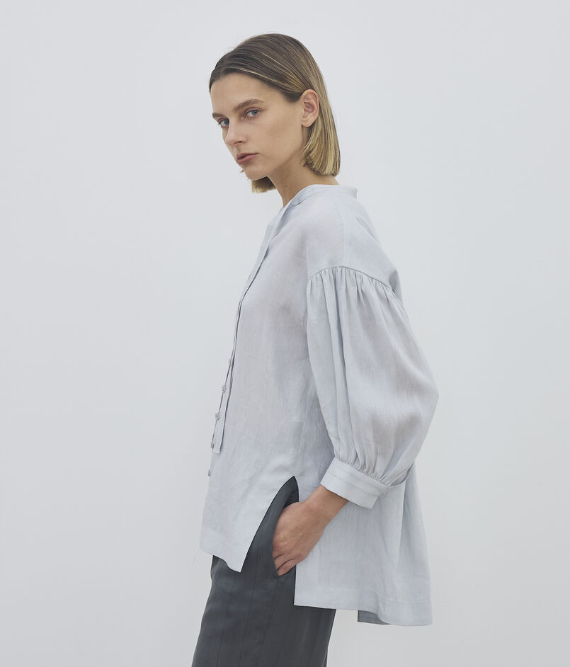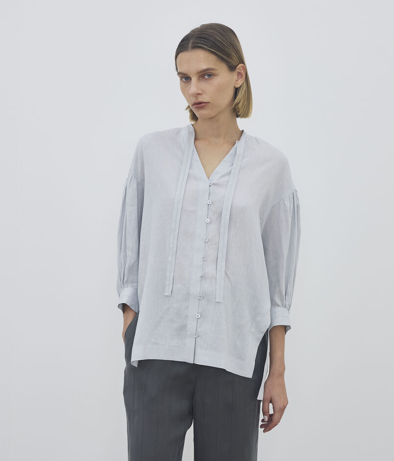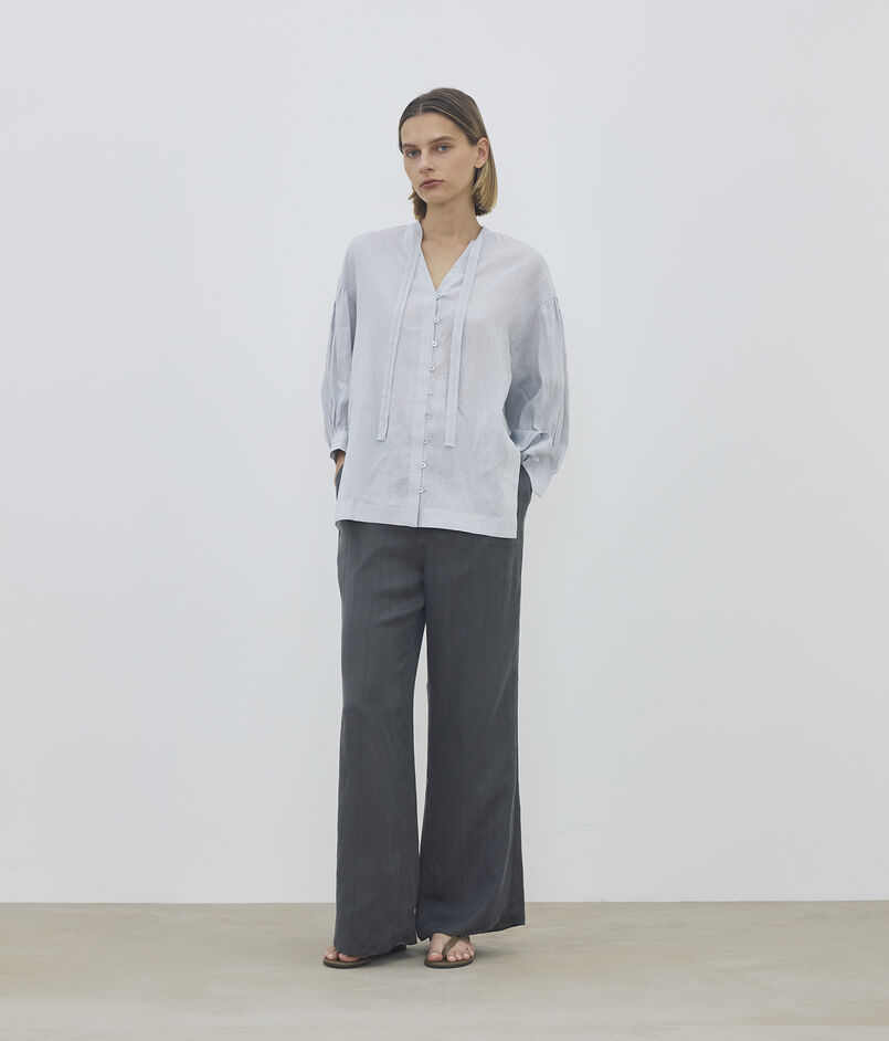 ラミーの清涼感にシルクのツヤを纏わせた〈DES PRES〉定番素材を使用したブラウスシリーズ。