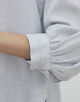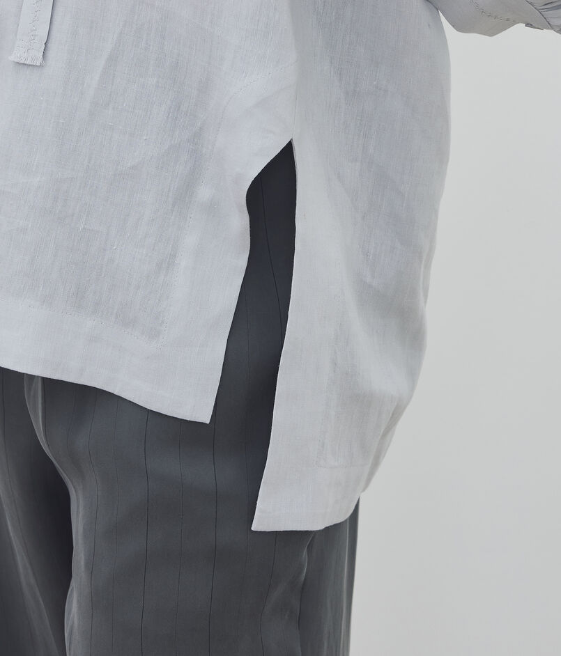 襟ぐりや袖口には繊細な刺繍ステッチをあしらい、アクセントをつけています。