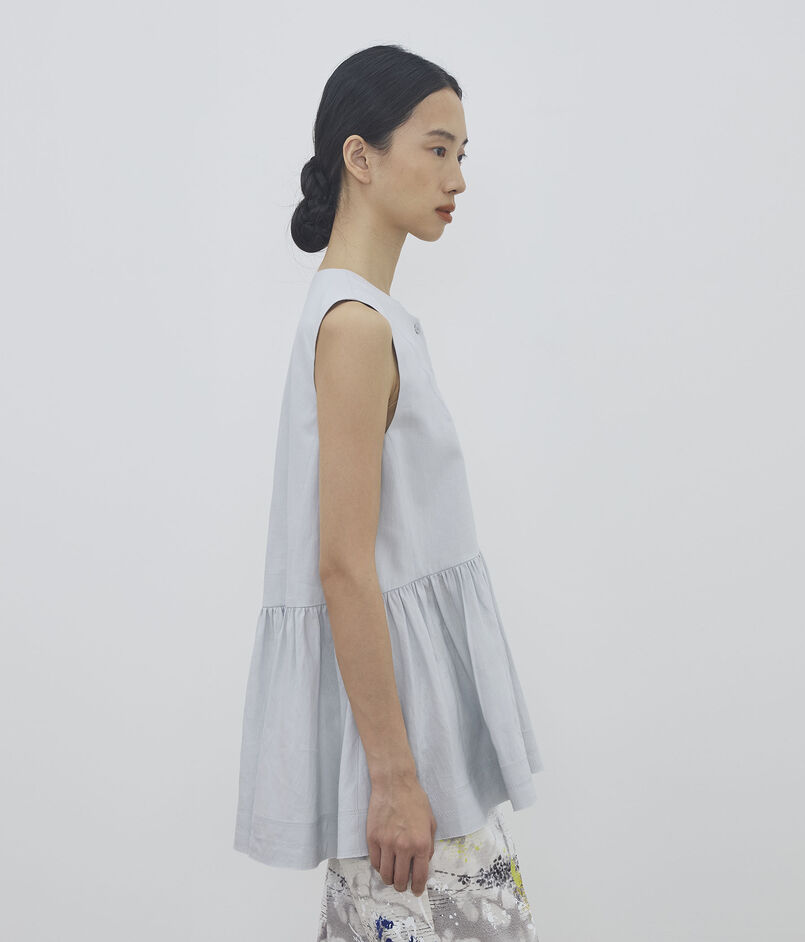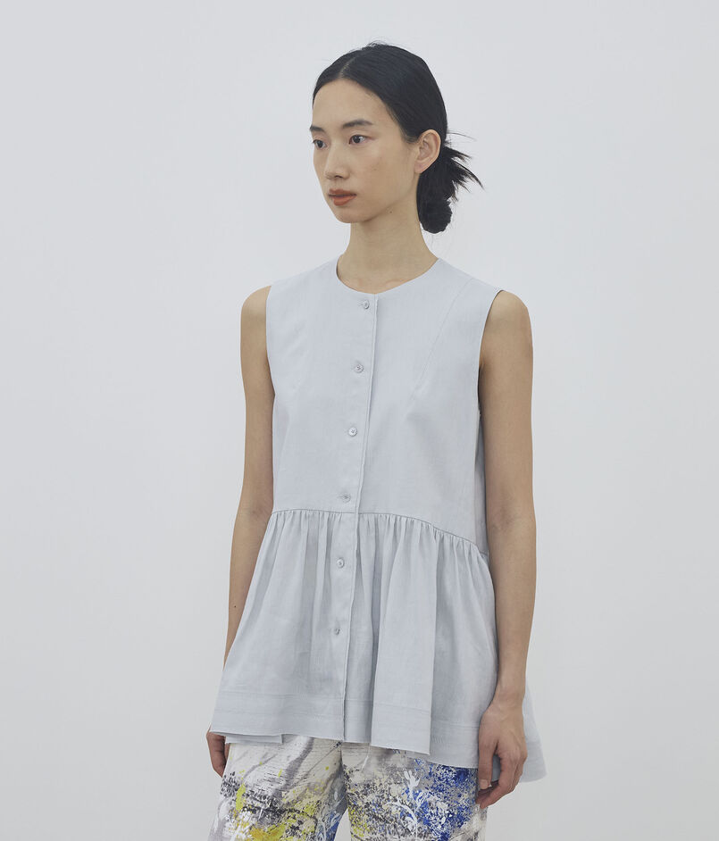 【WEB先行予約】リネンラミーシルク ギャザーペプラムブラウス