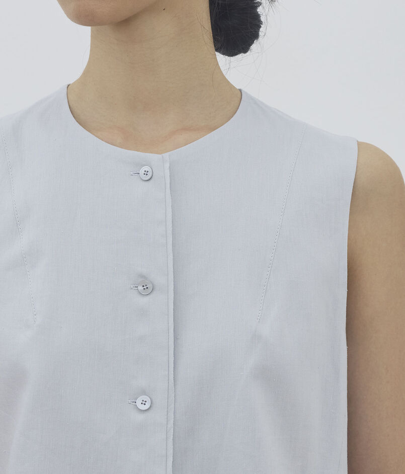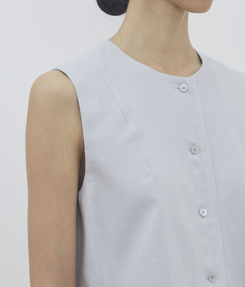 ラミーの清涼感にシルクのツヤを纏わせた〈DES PRES〉定番素材を使用したブラウスシリーズ。