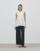 タイトなテーパードパンツや落ち感のあるマニッシュなワイドパンツですっきりと着こなすのがおすすめ。