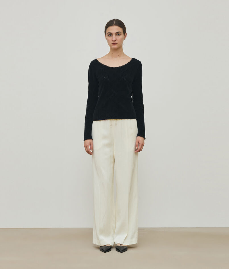 コットンシェニールヤーン ラウンドネックプルオーバー