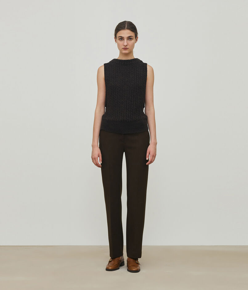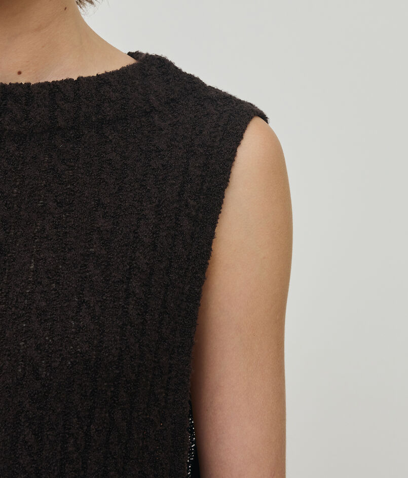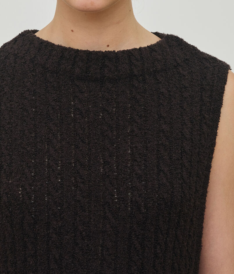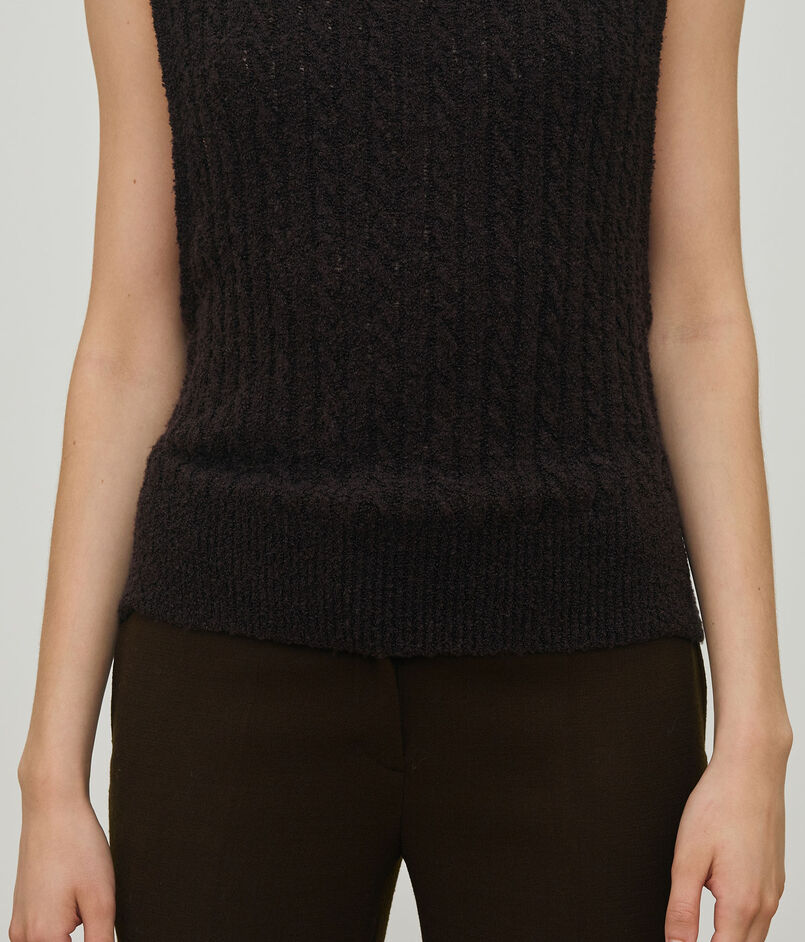 ケーブル編みでふっくらとしつつも見た目は軽やかさがあり、着用するととても暖かい素材です。