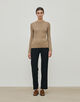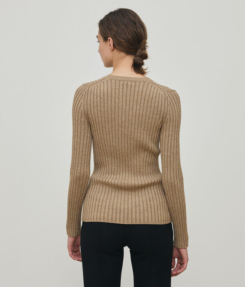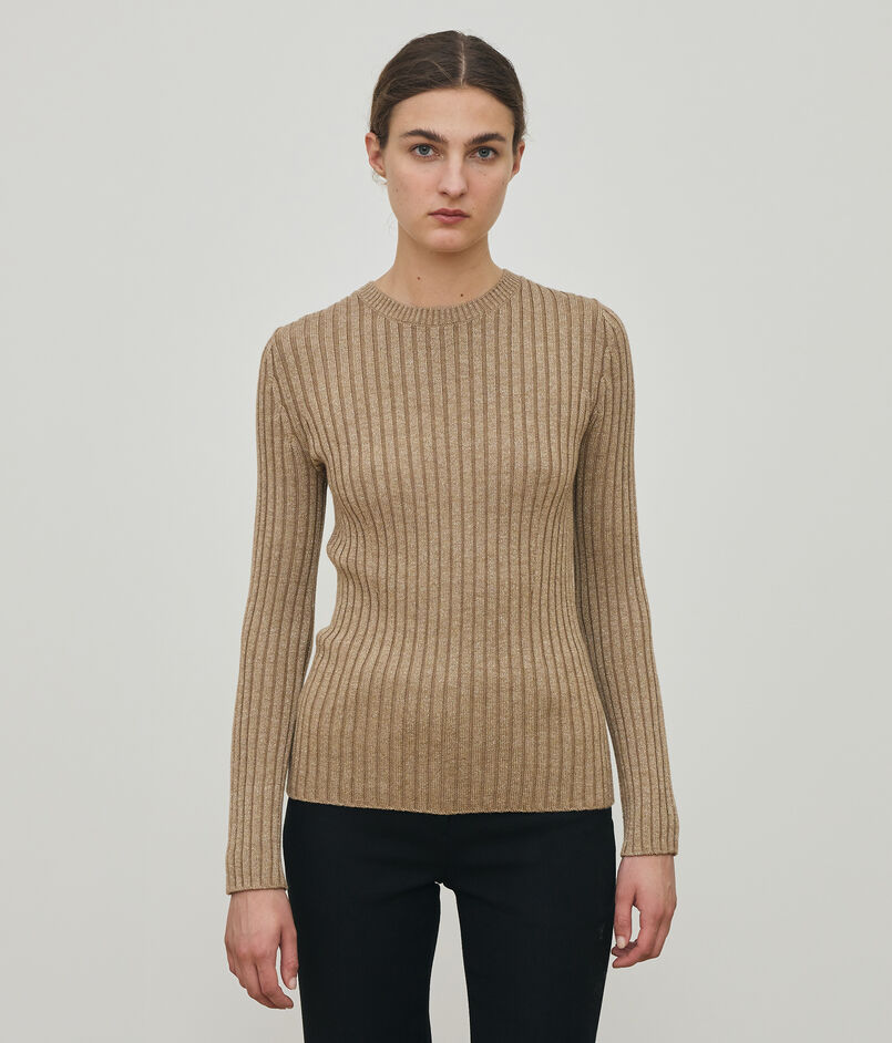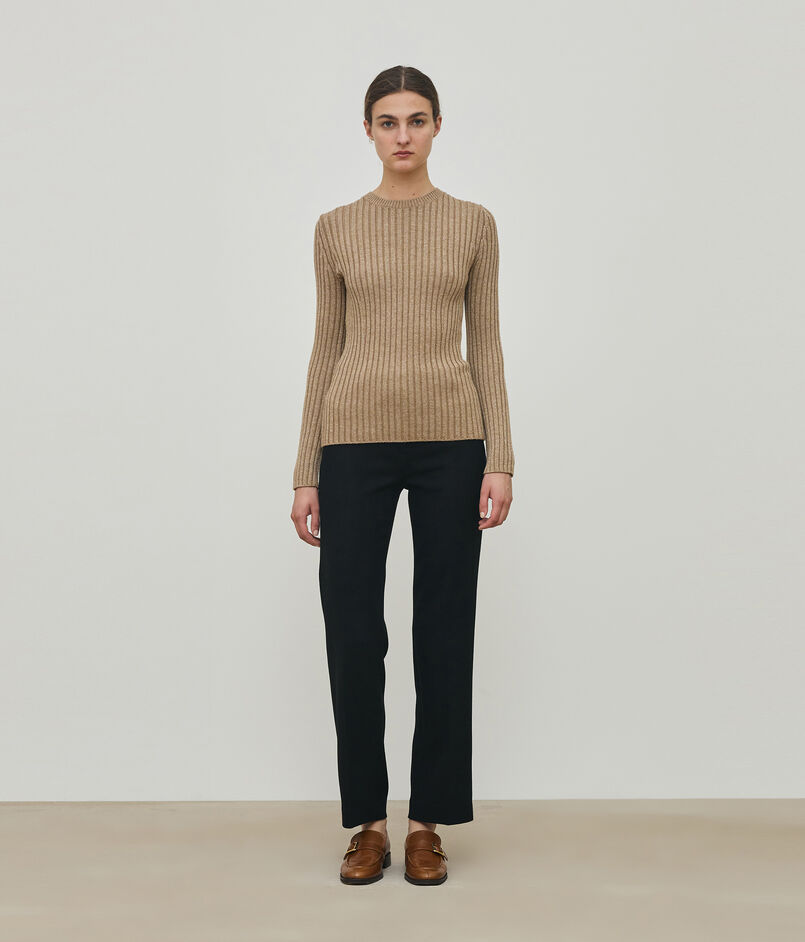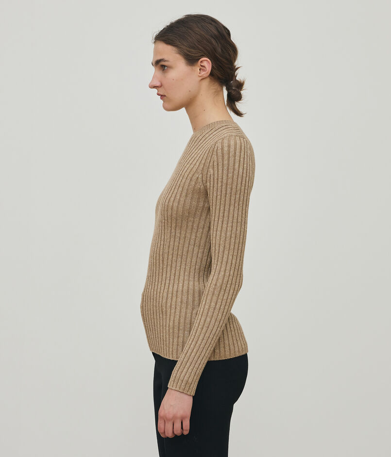 クルーネックプルオーバーはコンパクトなネックラインでクリーンかつ女性らしい印象の一着。