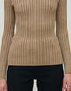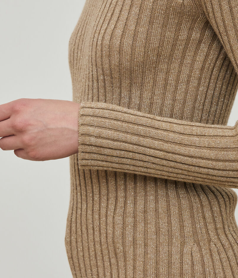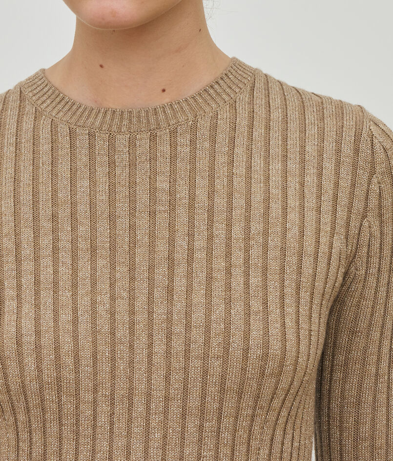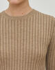 ミドルゲージのワイドリブを3本取りで編み上げているため、素材本来の風合いの良さと膨らみ、柔らかさを感じていただけます。