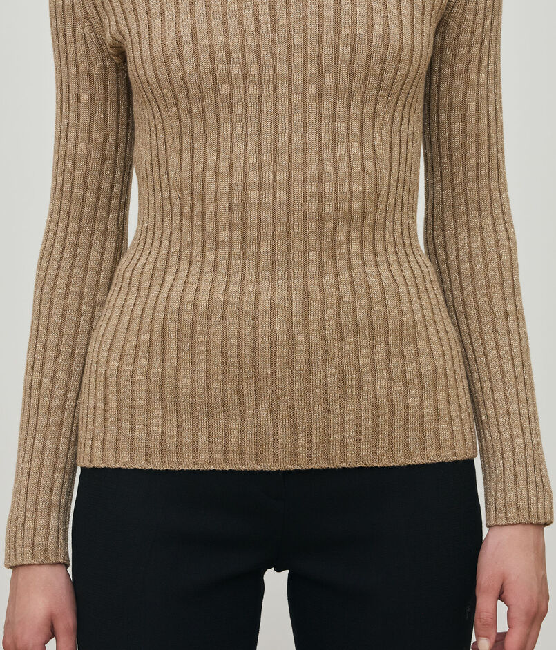 ボディに沿うすっきりとしたシルエットで、ワイドパンツやフレアスカートなどボリュームのあるボトムスともバランス良く合わせていただけます。