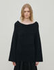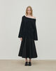 オフショルダーのデザインで鎖骨のラインを美しく強調し、顔周りがすっきりと華奢見えします。