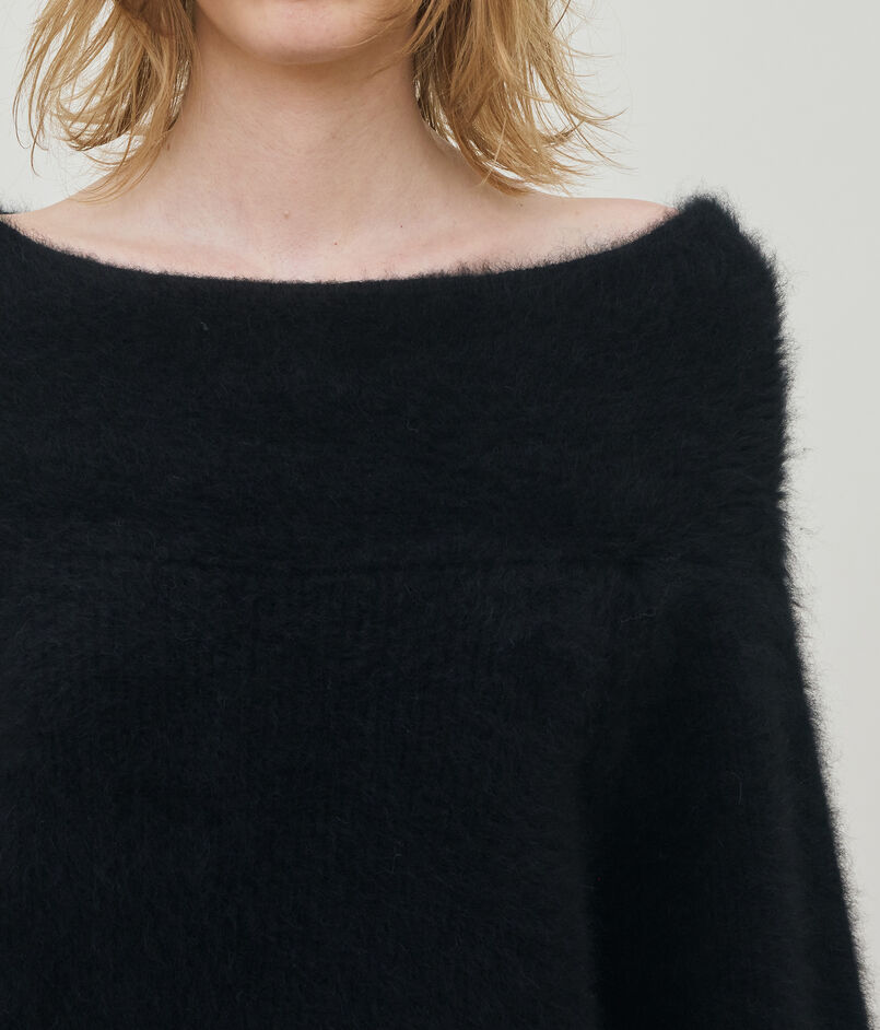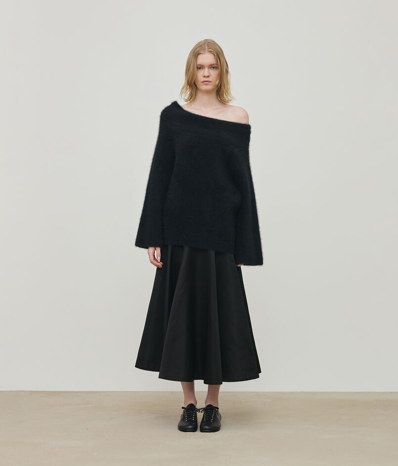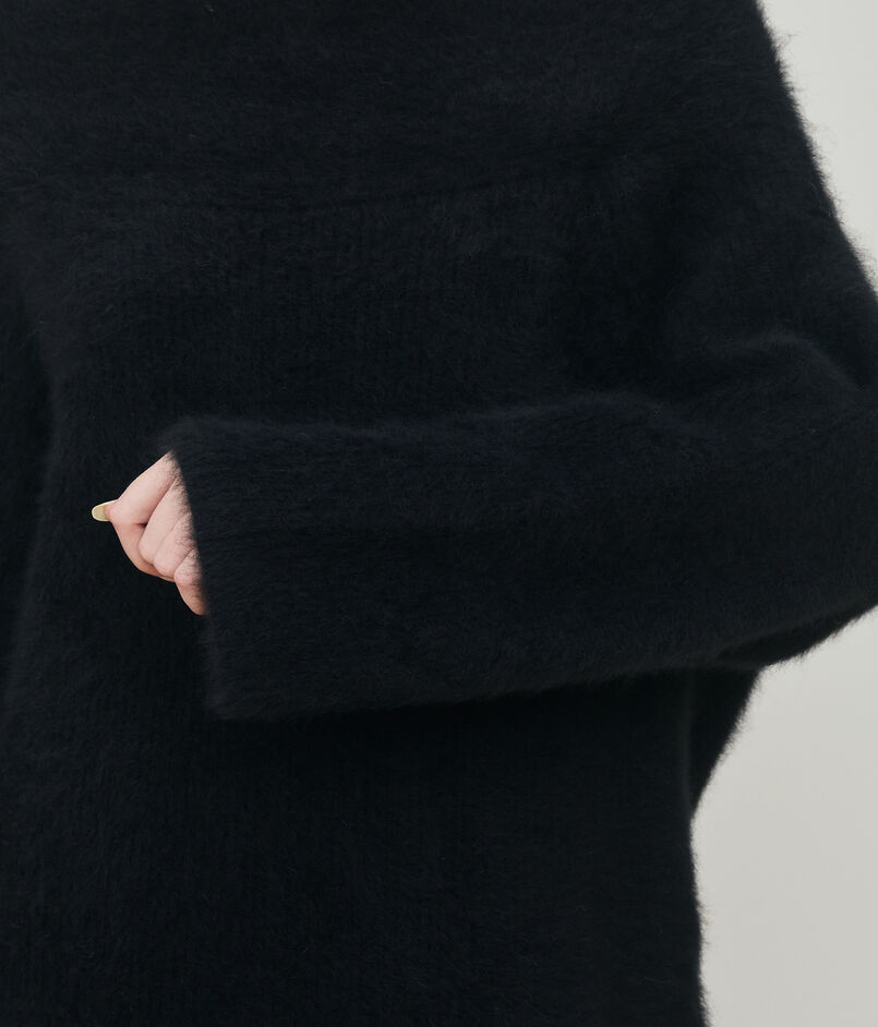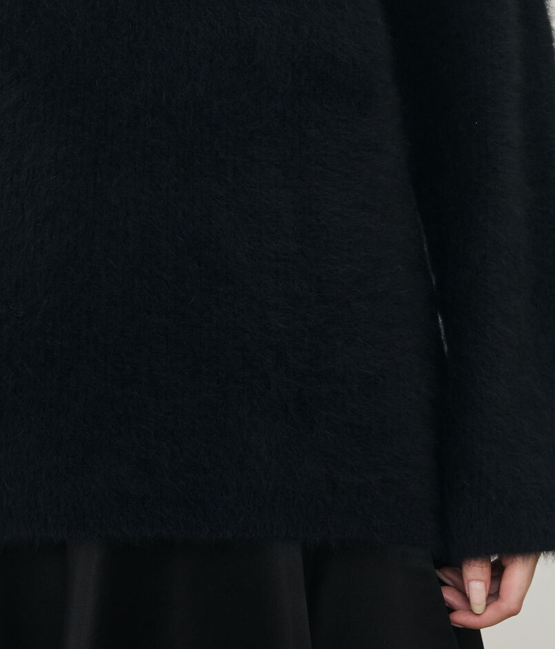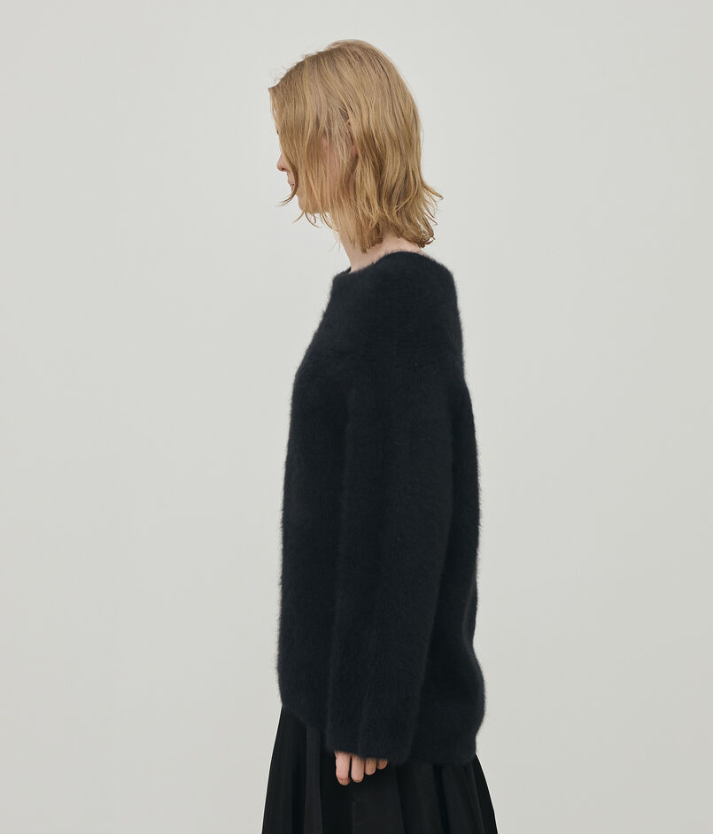 プルオーバーは片畦組織に編み立てることで軽さを残しつつも、フォックスの毛並みがふんわりと立ち上がることで存在感のある印象に。