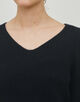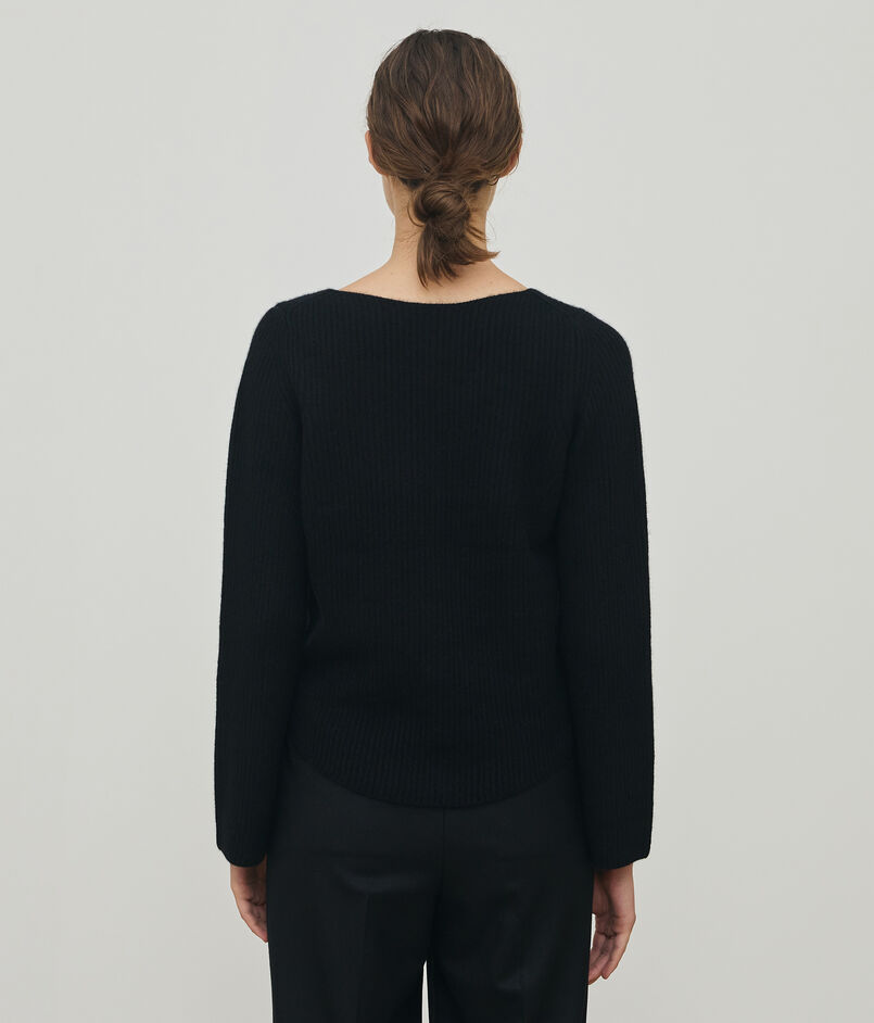横に広いVネックラインで上品な中にほど良く抜け感をプラスしています。