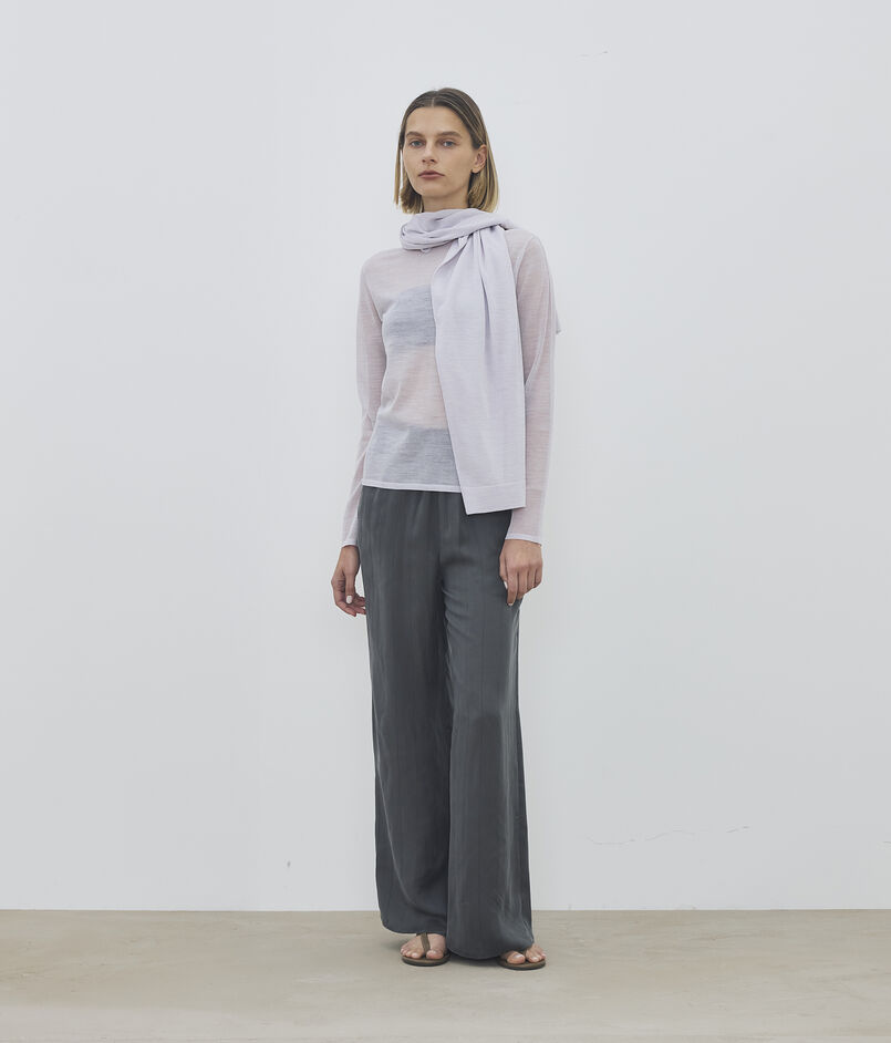 ウールとポリエステルを複合した極細番手の糸を使用し、18ゲージの度詰め天竺で編み上げたニットシリーズ。