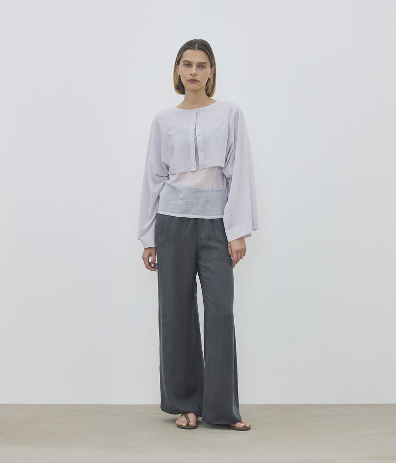 春先から秋口まで長くお召しいただけ、日常の装いにモードなニュアンスを添えてくれるアイテム。