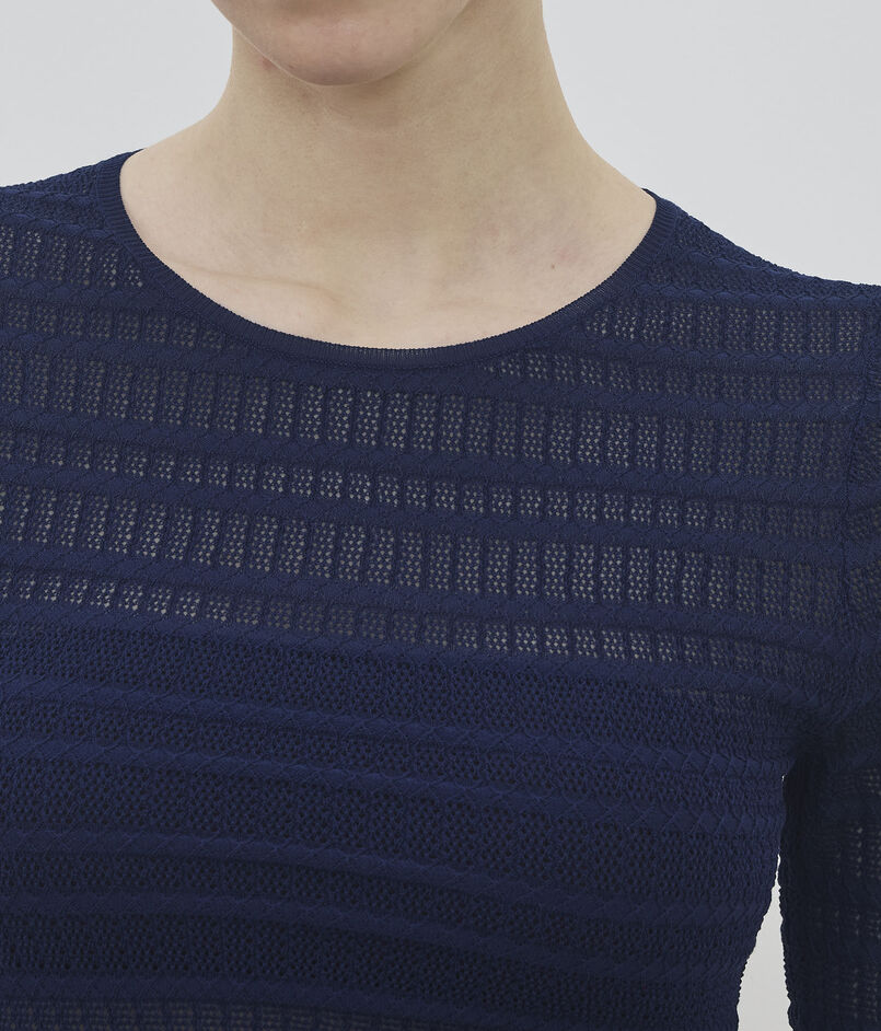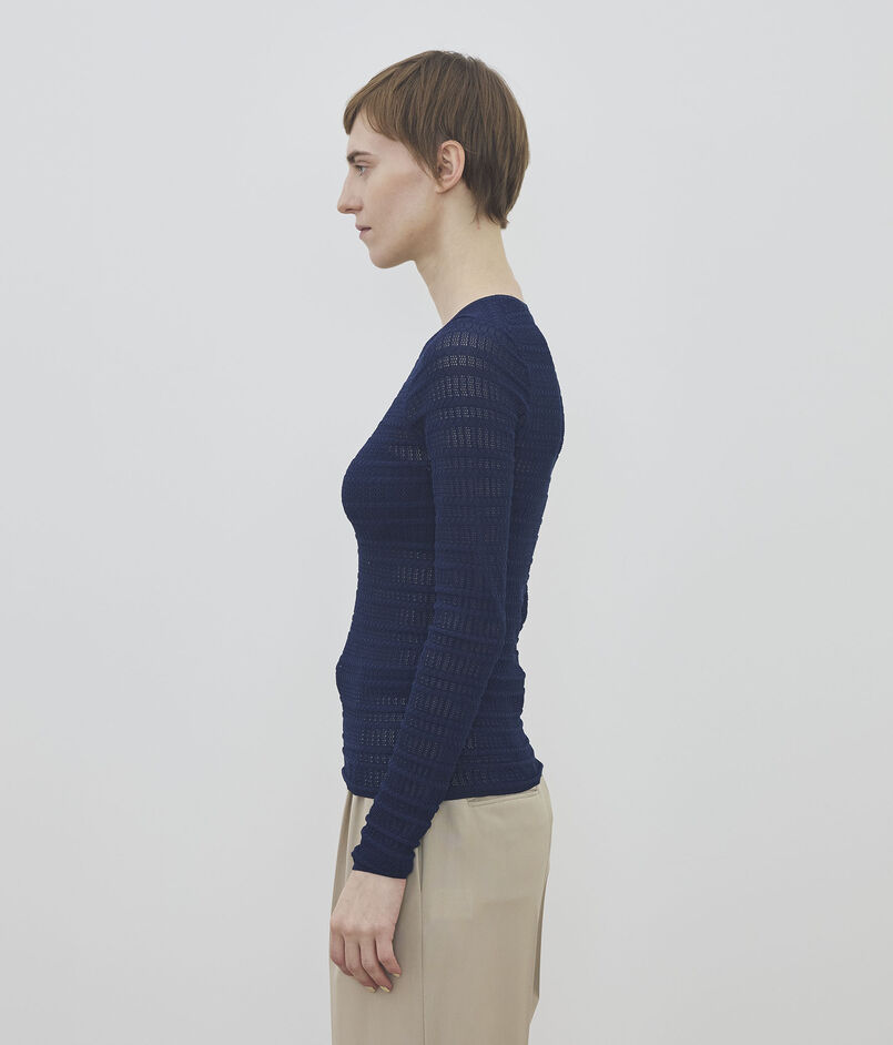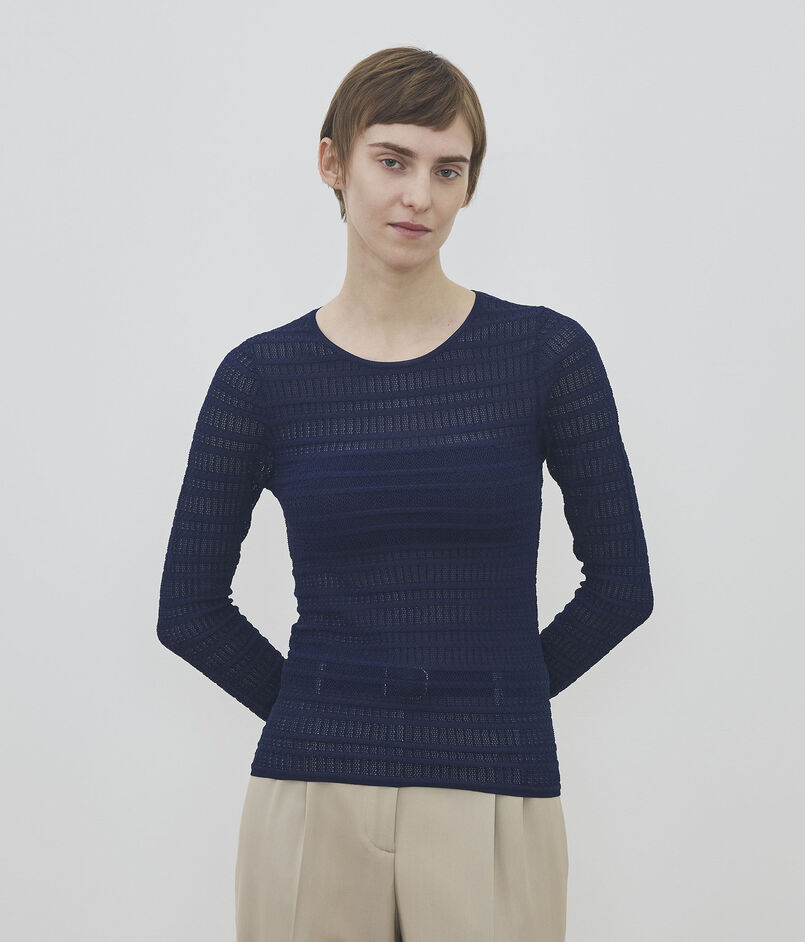 ほど良く身体のラインに添うシルエットで女性らしさを引き立たせたラウンドネックプルオーバー。