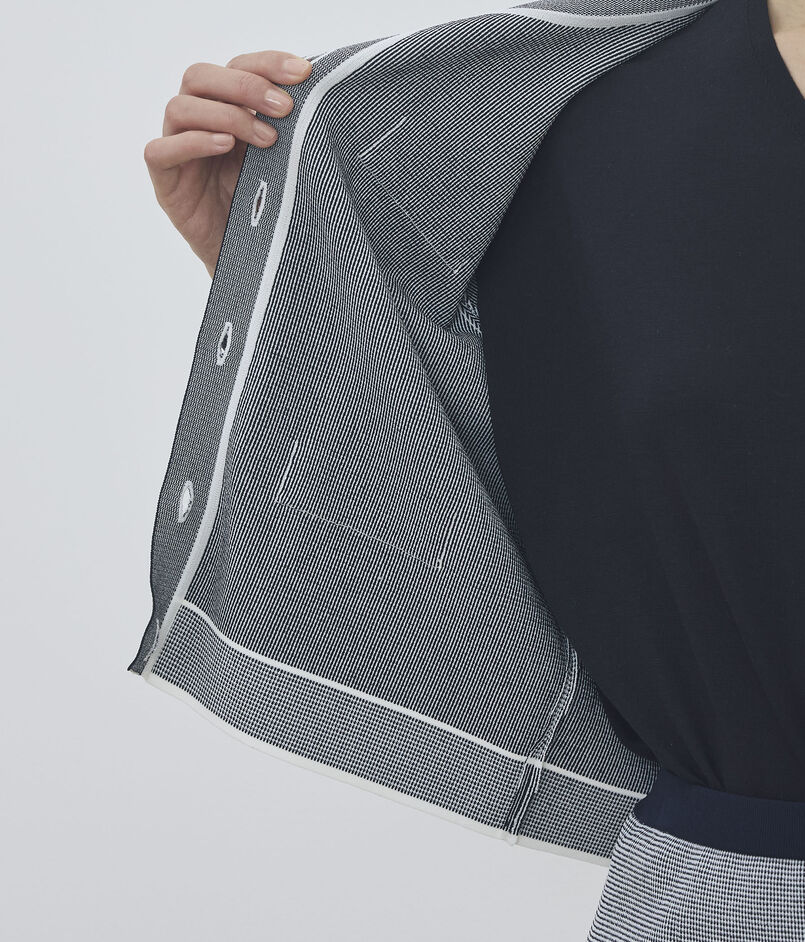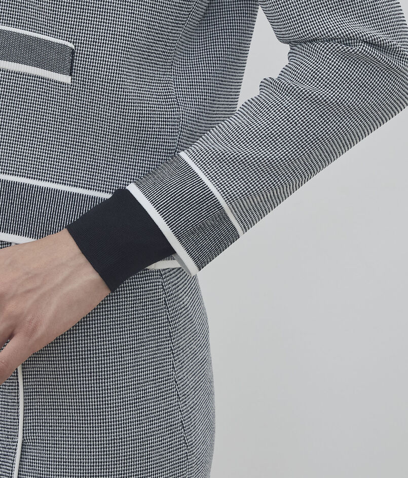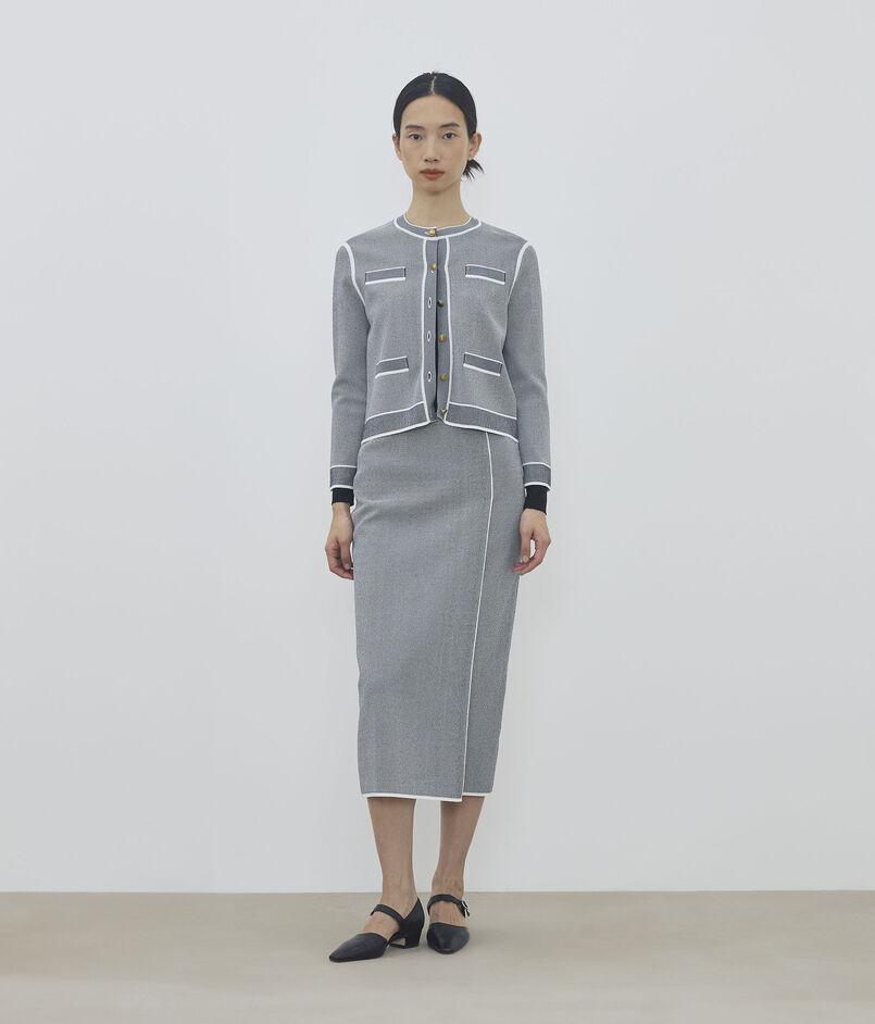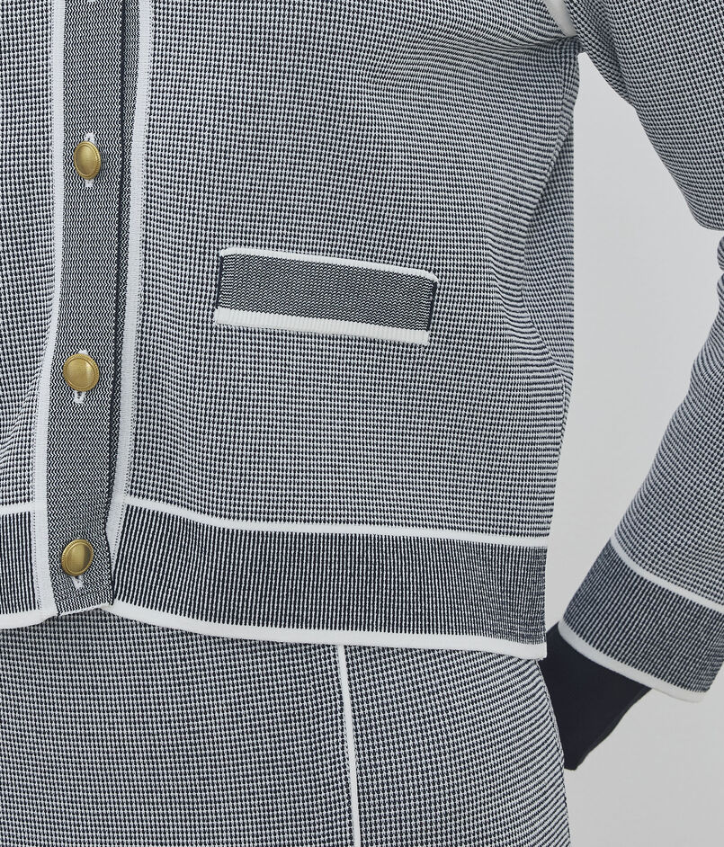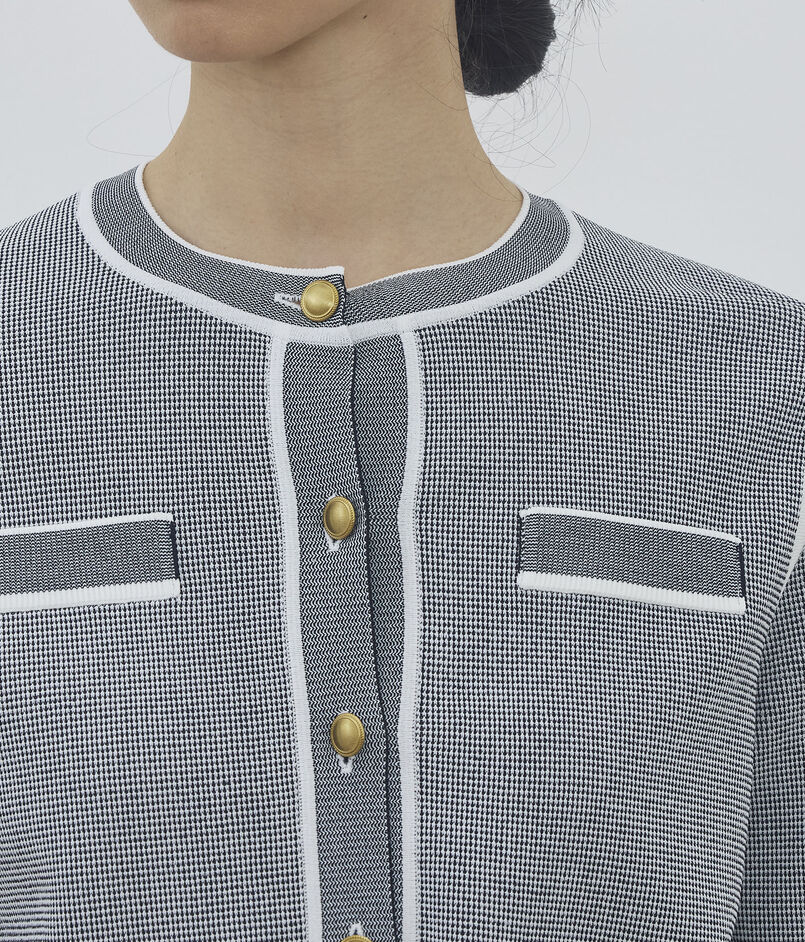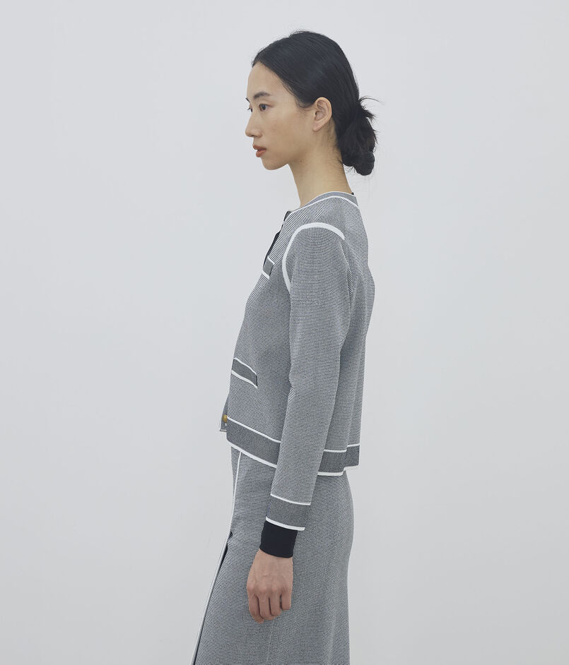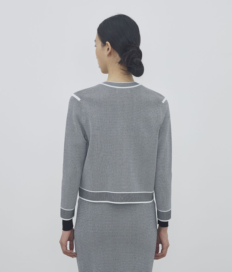 ストレッチダブルジャカード パイピングクルーネックカーディガン