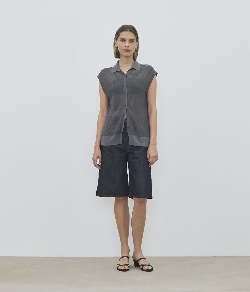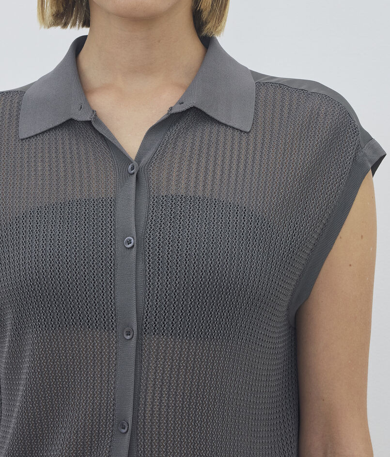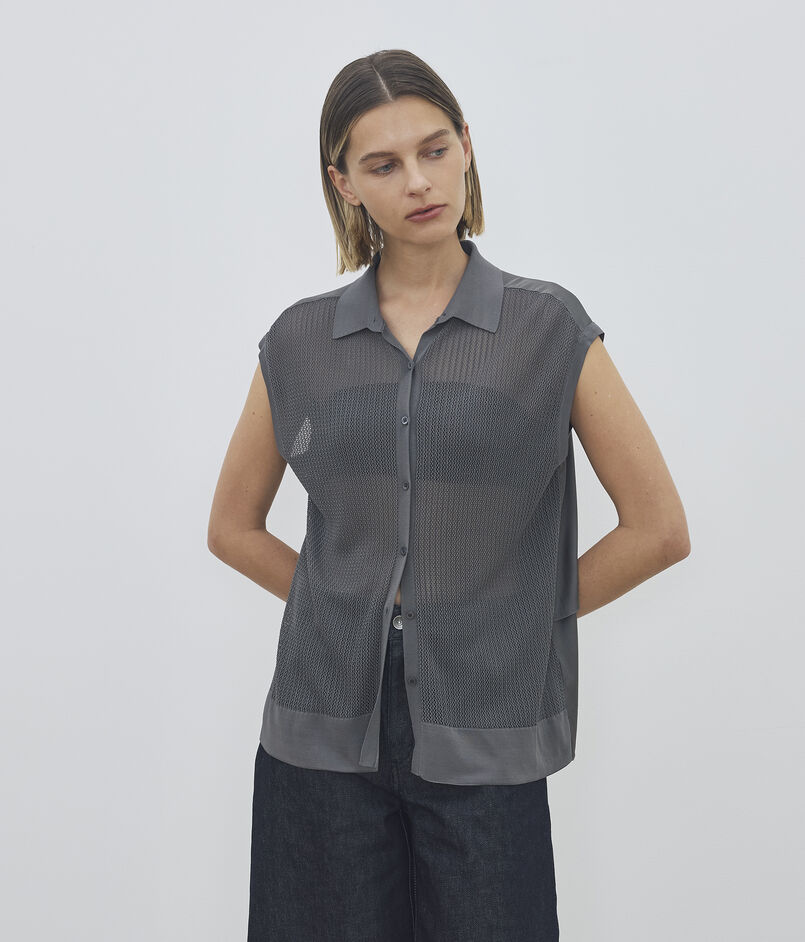 フロントをシアーで風通しの良いアイレットリブに編み立てた、軽やかで涼しげな印象のプルオーバー。