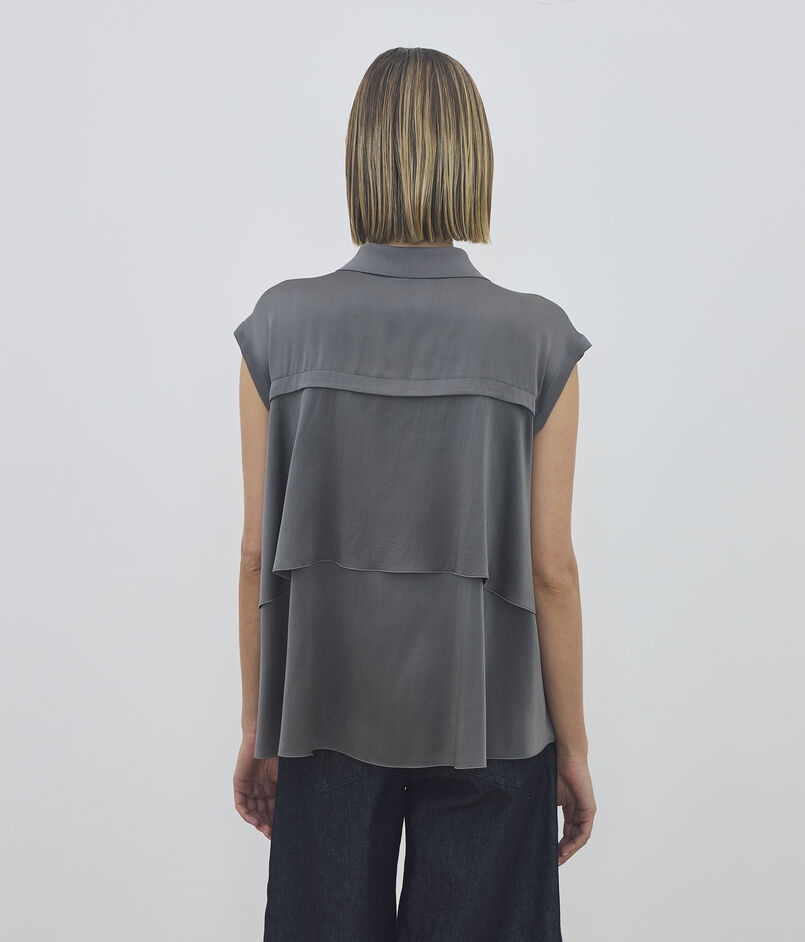 【WEB先行予約】 マットレーヨンシルクサテンコンビ フレンチスリーブシャツプルオーバー