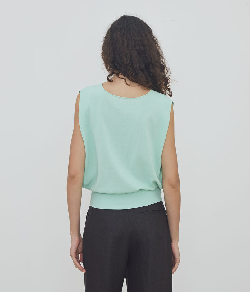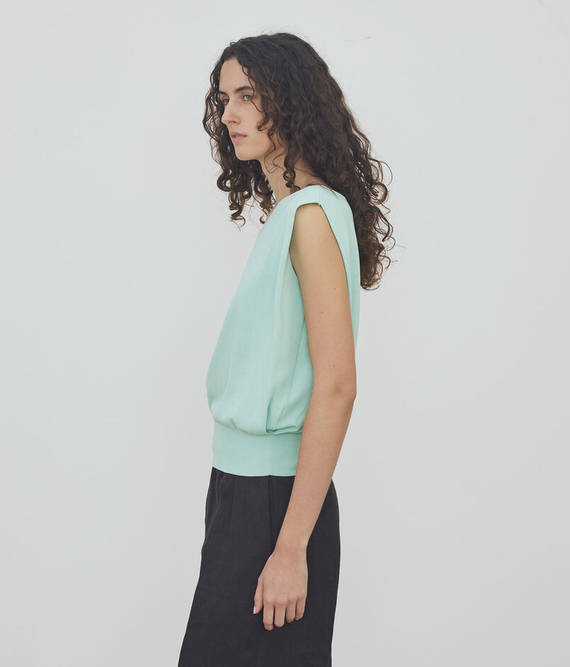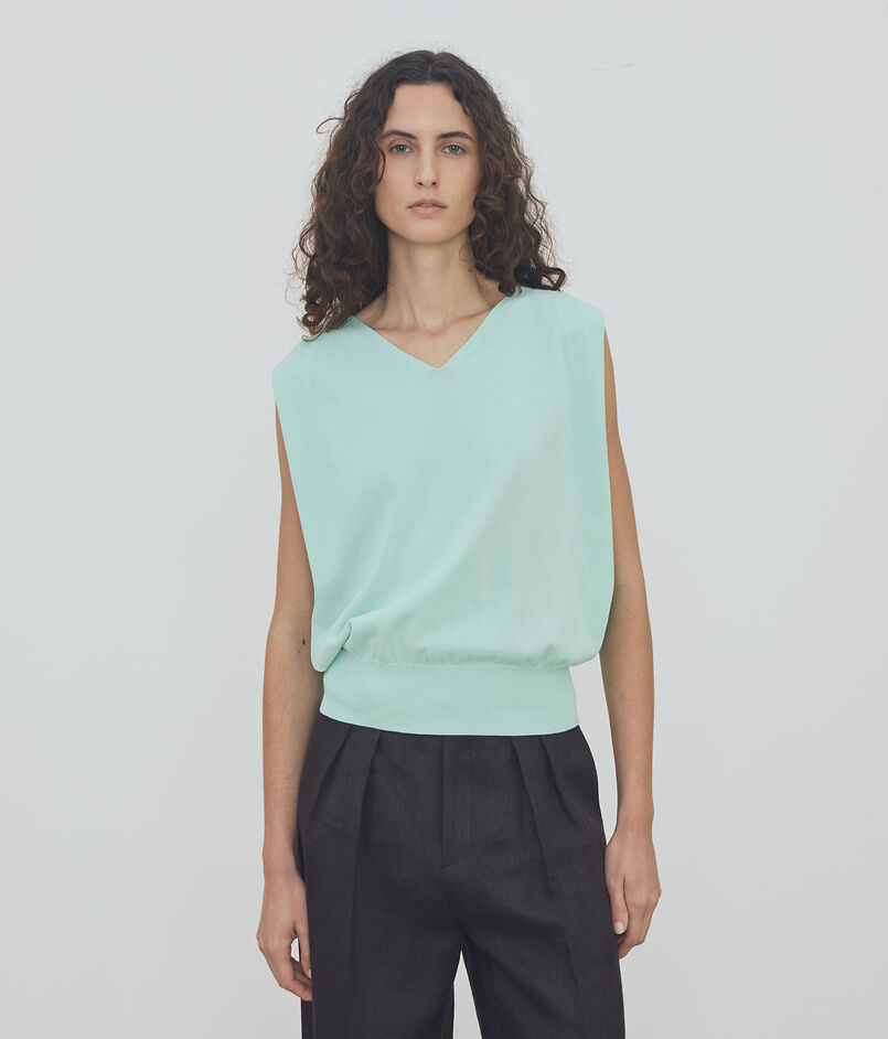 サイドに施したタックが描く構築的なボリュームが印象的なプルオーバー。