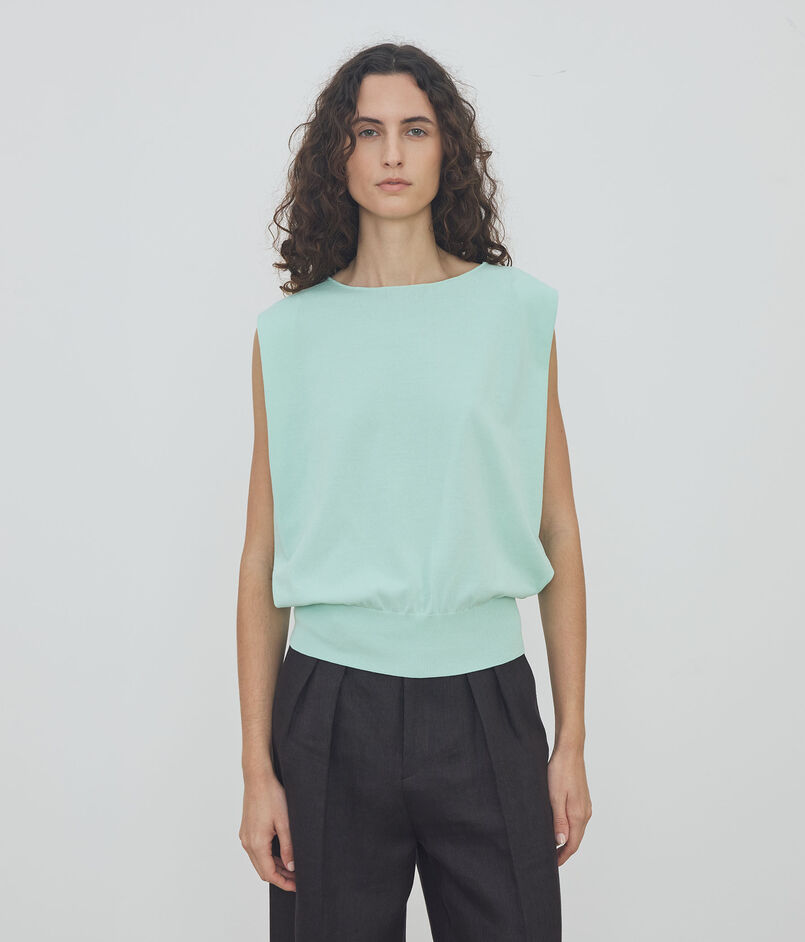 身体のラインを拾わないリラクシーなシルエットながら、裾のリブが全体を緩やかに引き締め、洗練された丸みを生み出します。