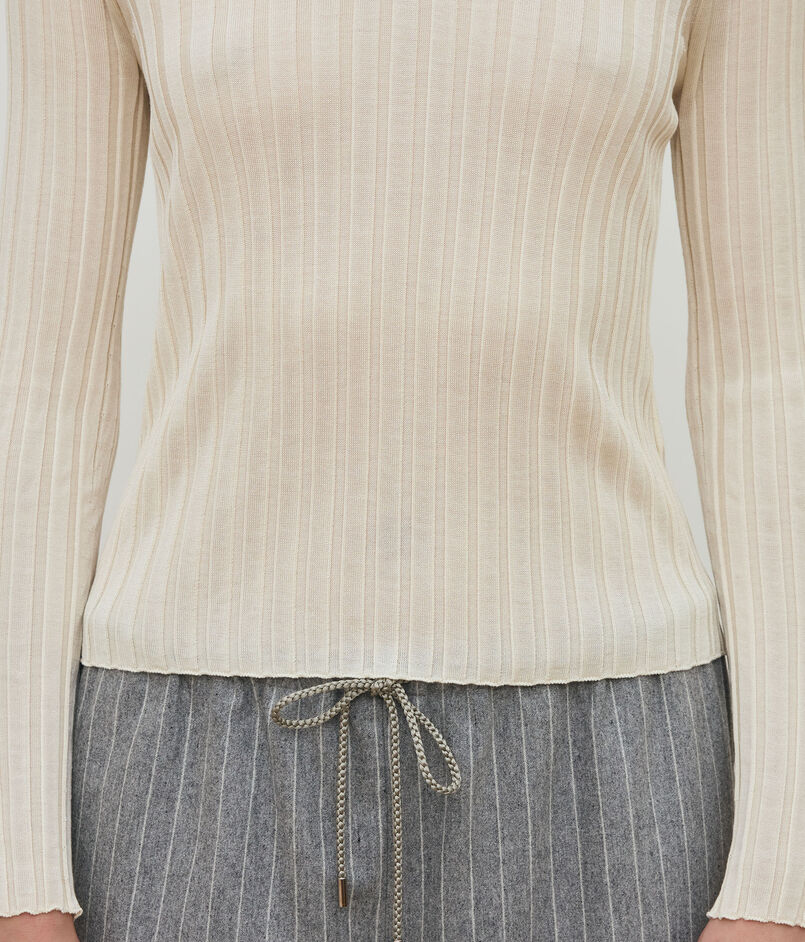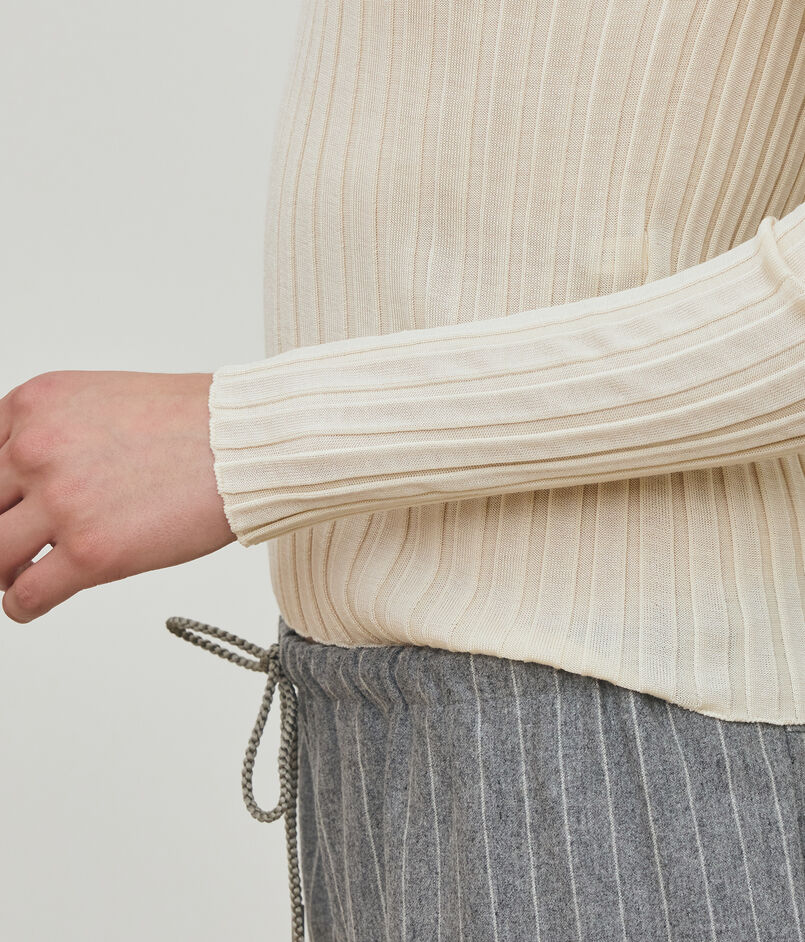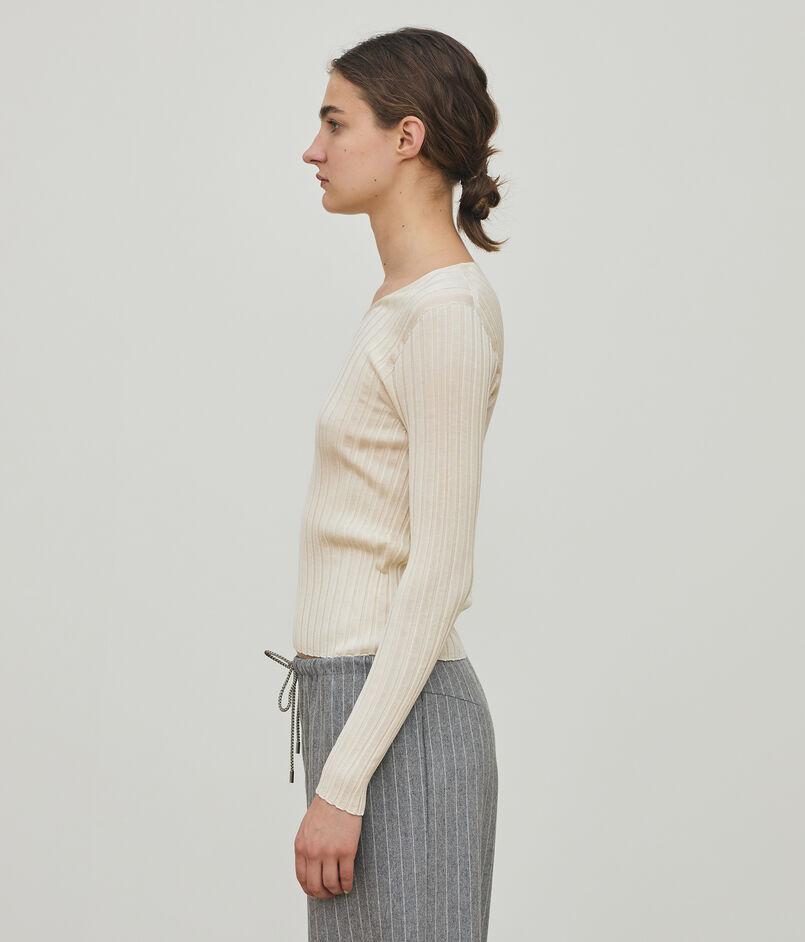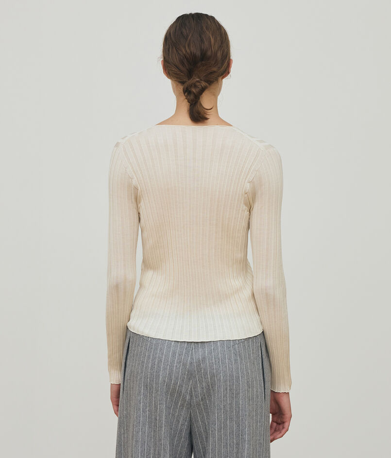 養蚕から紡績まで国内で一貫の純国産絹紡糸を生産している唯一のメーカー「中川絹糸」の素材を使用したニットシリーズ。