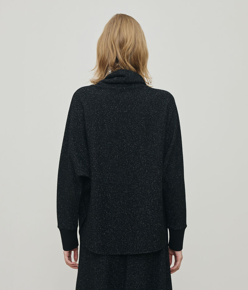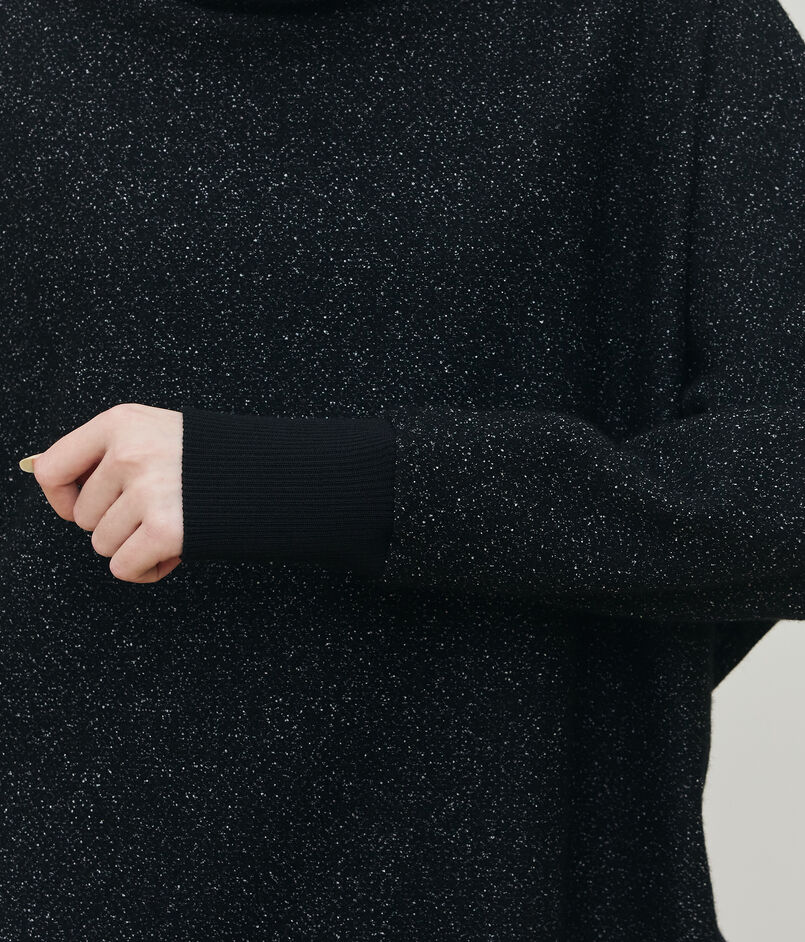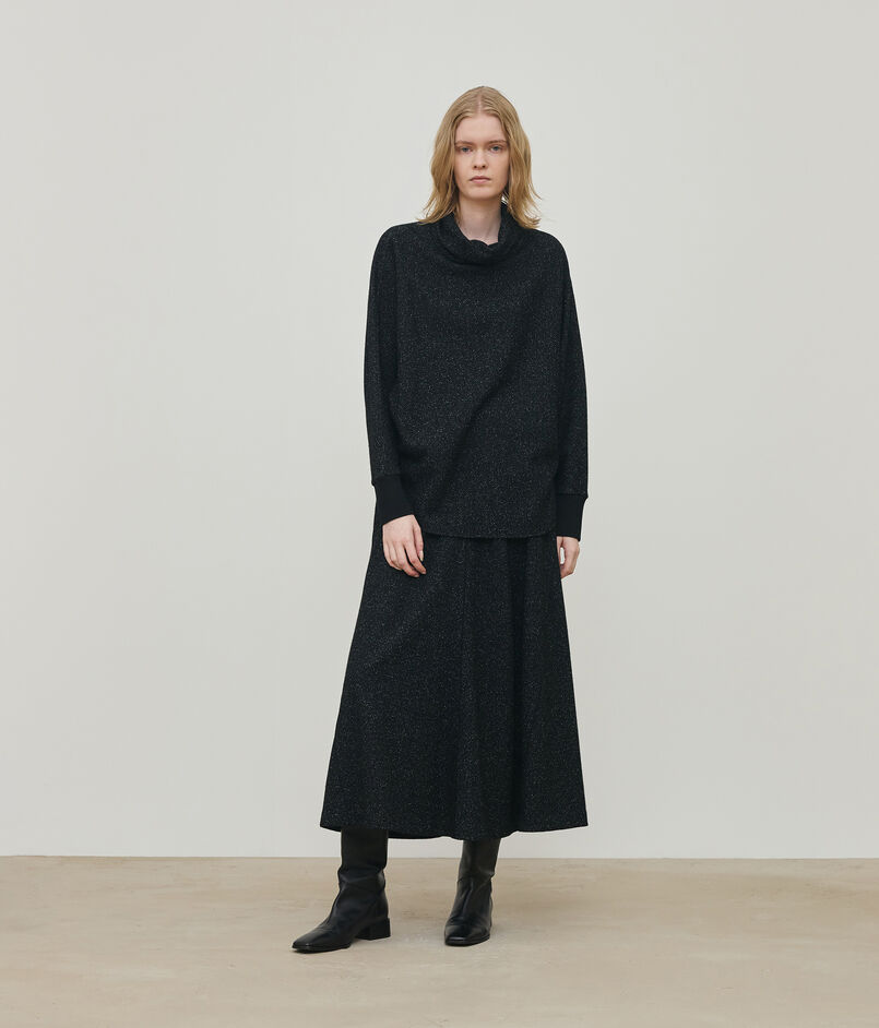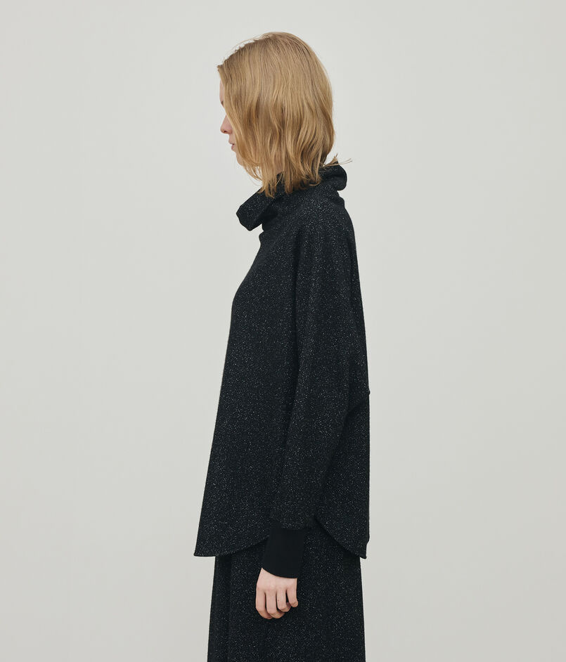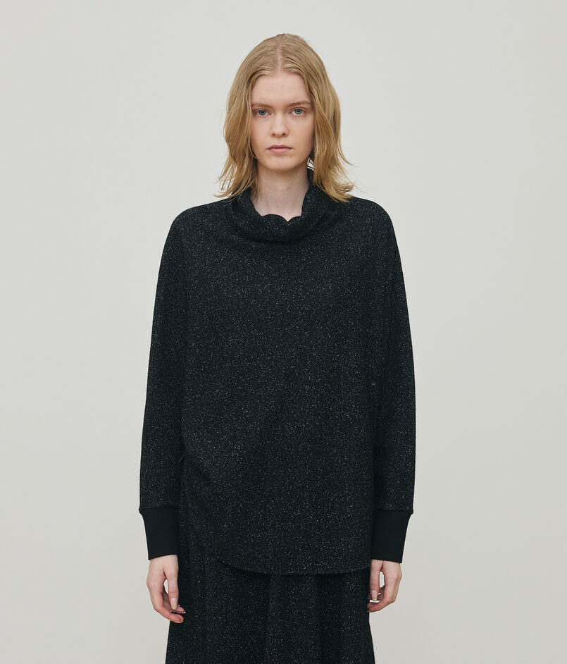 タートルネックプルオーバーはボクシーなシルエットにルーズなハイネック、ドルマンスリーブのデザインでリラックス感のある雰囲気に仕上げた一枚。