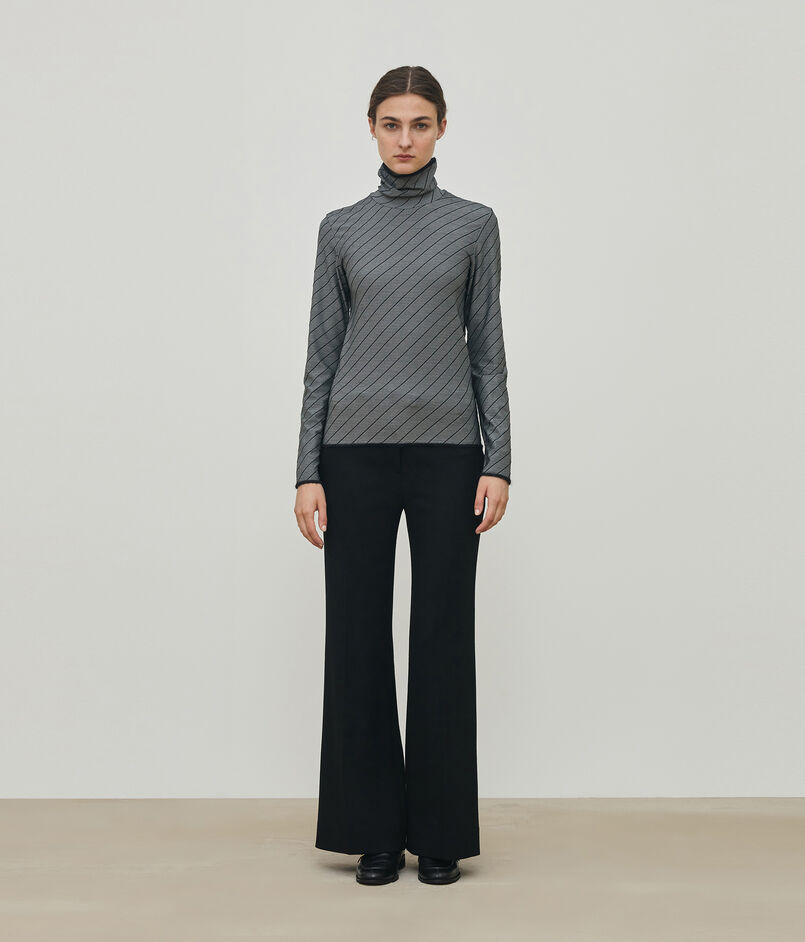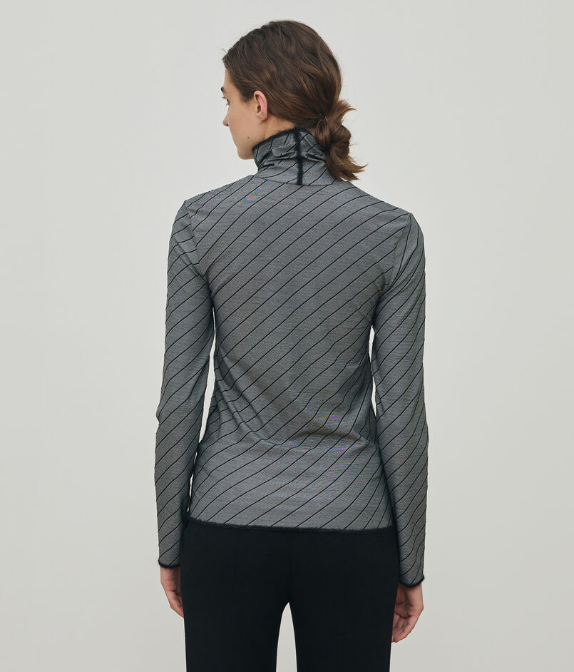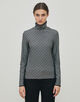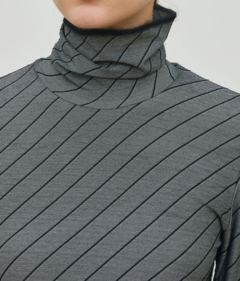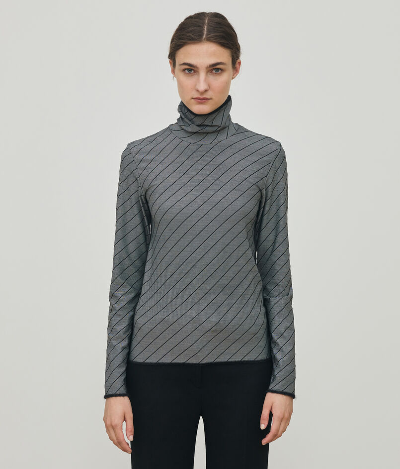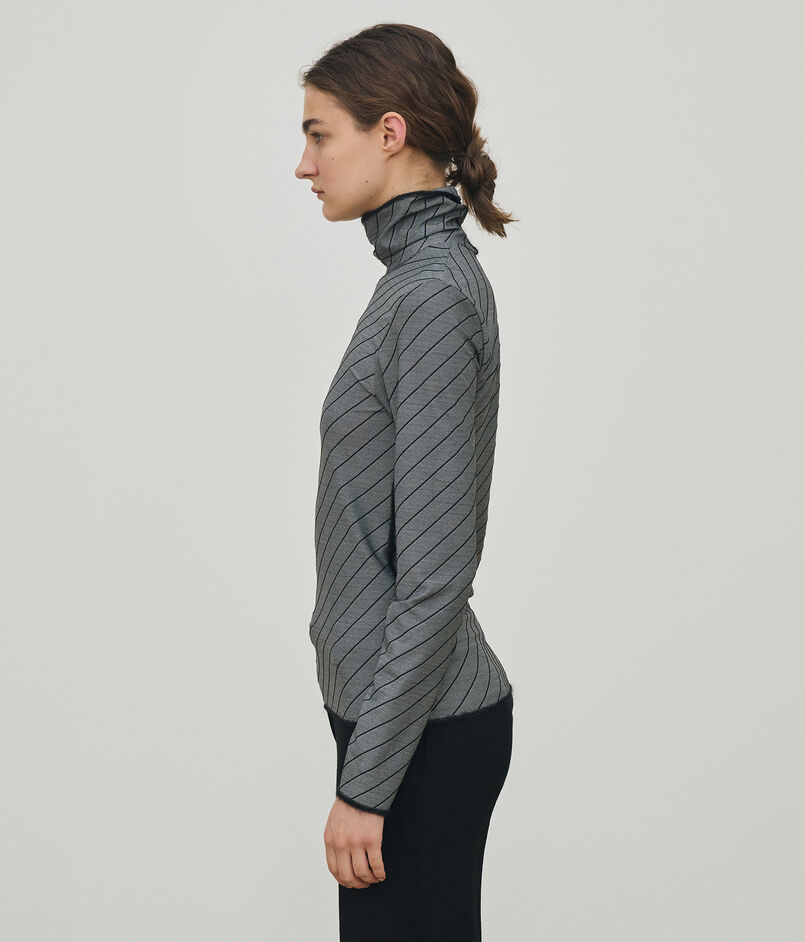 ボディにフィットするシルエットですっきりと着こなせるタートルネックプルオーバー。