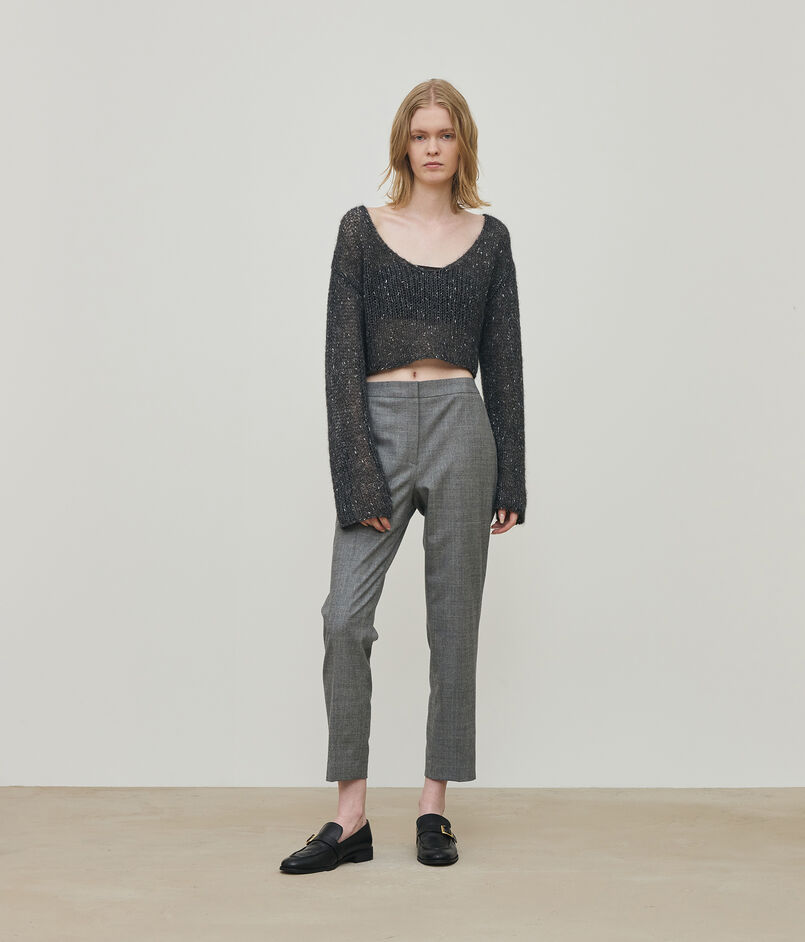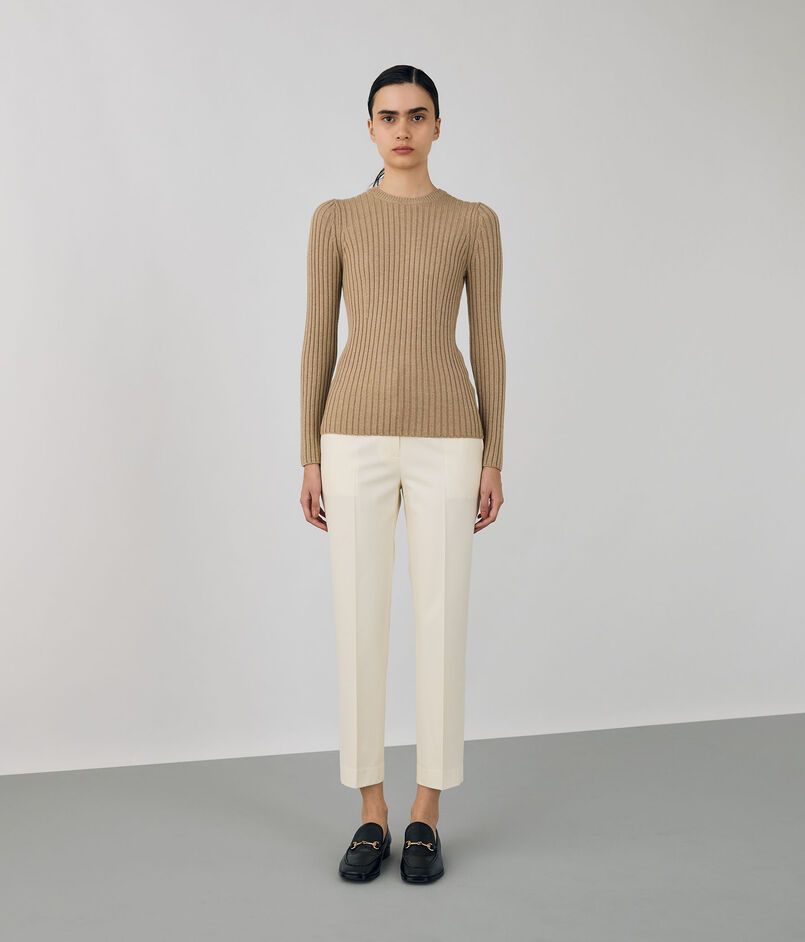 シガレットパンツは足首にかけて緩やかに細くなるすっきりとしたシルエットでシャープな印象の一着。