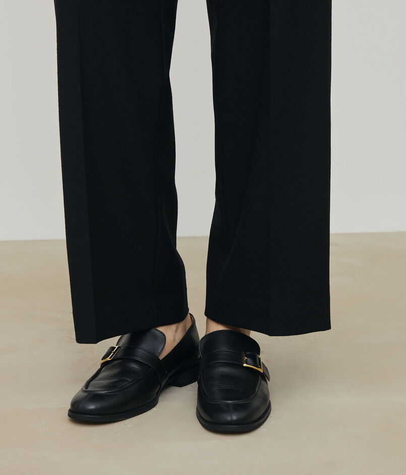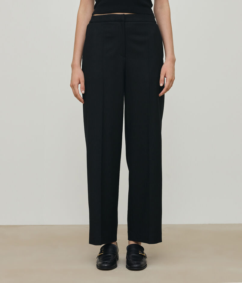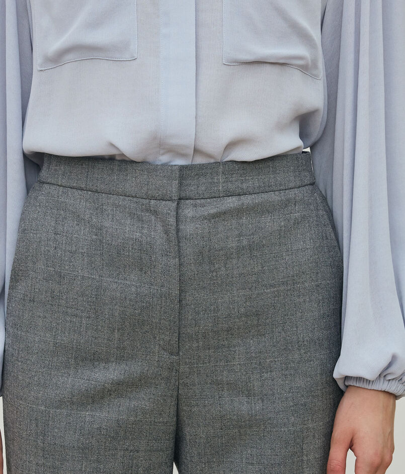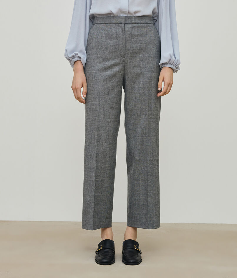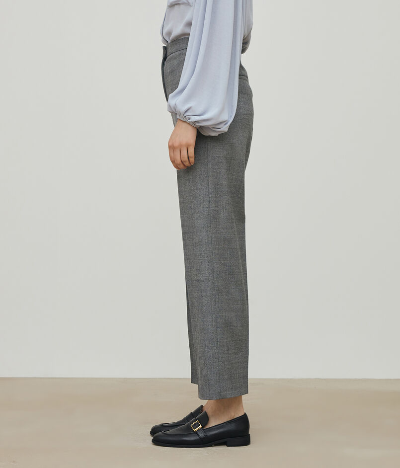 セミワイドパンツは裾にかけてすとんと落ちる絶妙な太さのセミワイドシルエットでリラックス感がありつつも、フィット感のある腰まわりにハイウエストのデザインですっきりとしたバランスに。