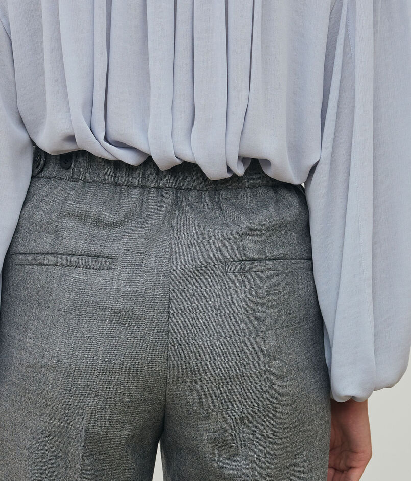〈DES PRES〉定番の、ほのかな光沢とストレッチ性のあるウールのフランネル素材を使用したボトムスシリーズ。