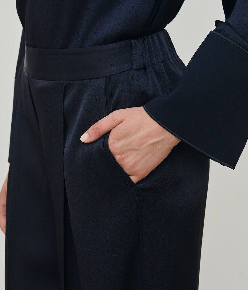 サテンジョーゼット タックワイドパンツ