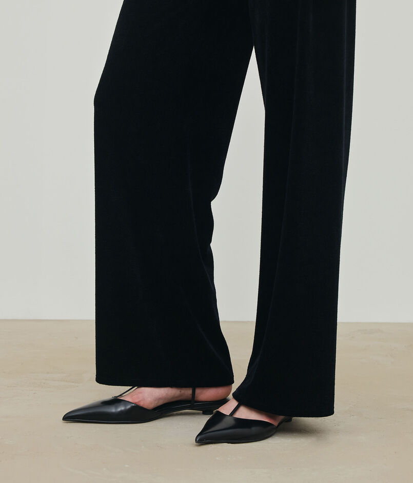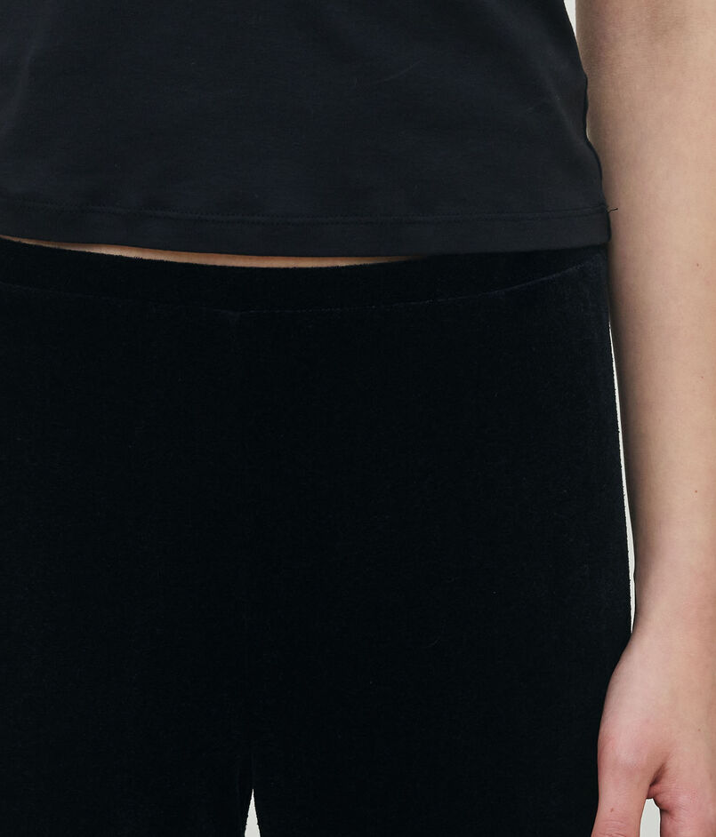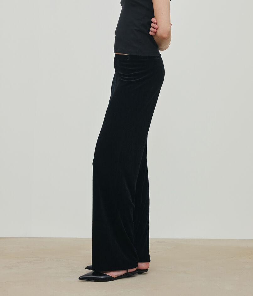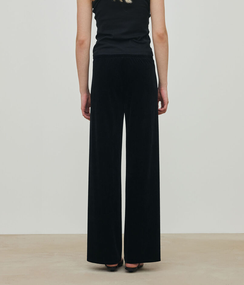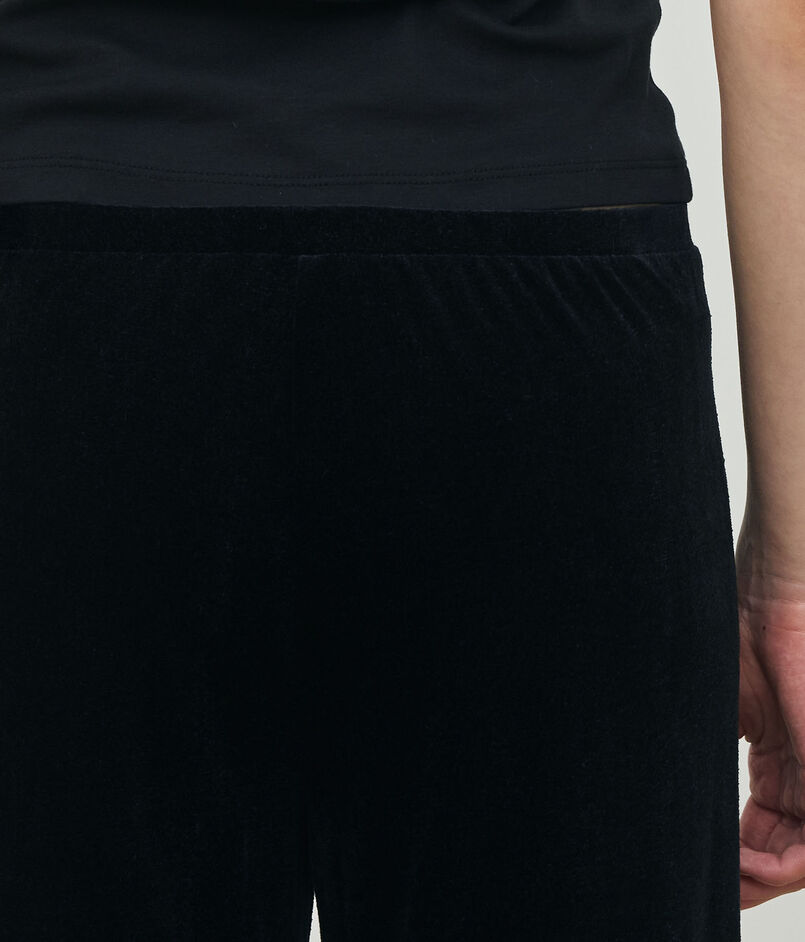 ベロア特有の深みのある上品な光沢に、モダールの自然なつやが加わった高級感のあるモダールベロアのラウンジパンツ。モダールはレーヨンの一種で非常にソフトでシルキーな肌触りが特徴です。
