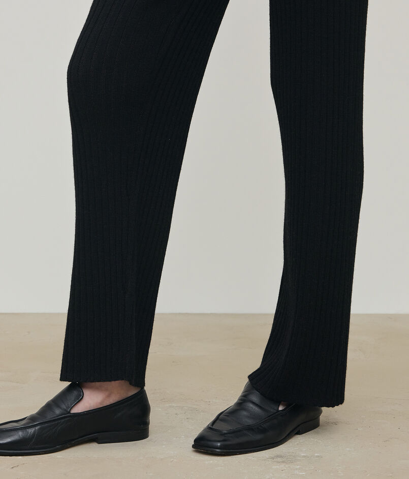 ミドルゲージのワイドリブを3本取りで編み上げているため、素材本来の風合いの良さと膨らみ、柔らかさを感じていただけます。
