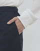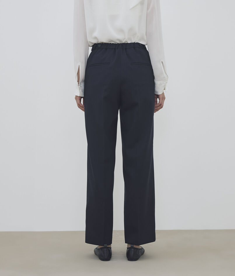 〈DES PRES〉では定番のセミワイドシルエットのパンツは、ウエストにゴムがあるので、リラックス感も兼ねそろえた便利なアイテム。スニーカーなどと合わせてデイリーに着用もできます。